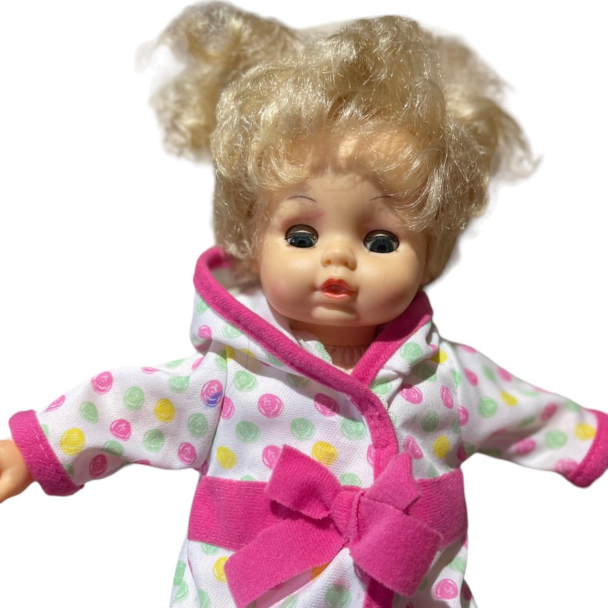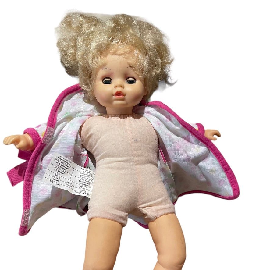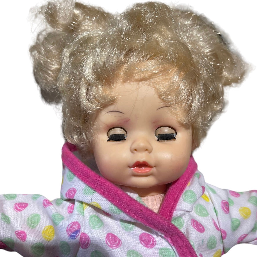 Sweet Vintage Citi Toy Baby Doll, from the 1980's. This beautiful doll has blond hair, blue sleepy time eyes and is in very good preowned condition.
