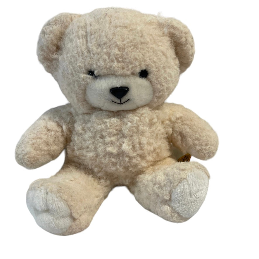 Sweet Vintage Bear with a tightly napped cream fuzzy coat with black eyes and nose. 24K Polar Puff Plush in good, preowned, vintage condition.