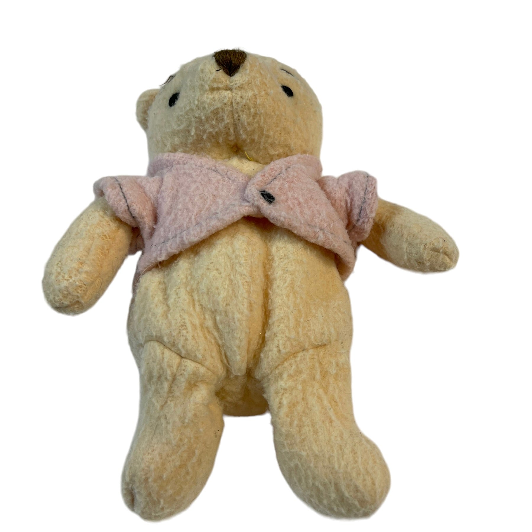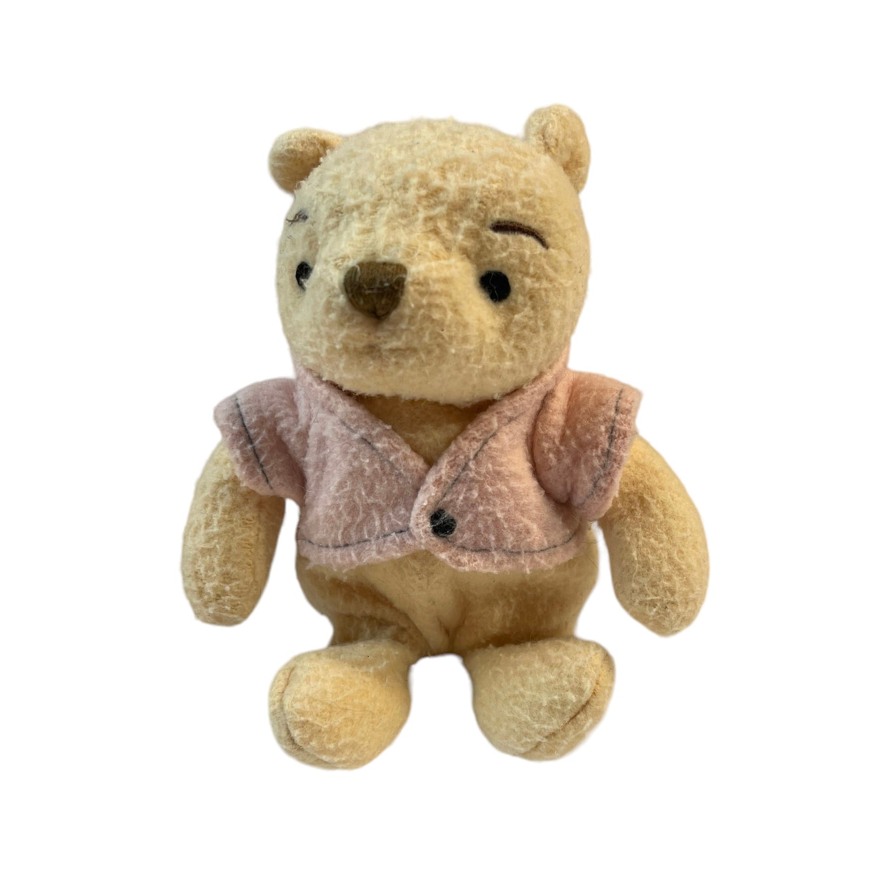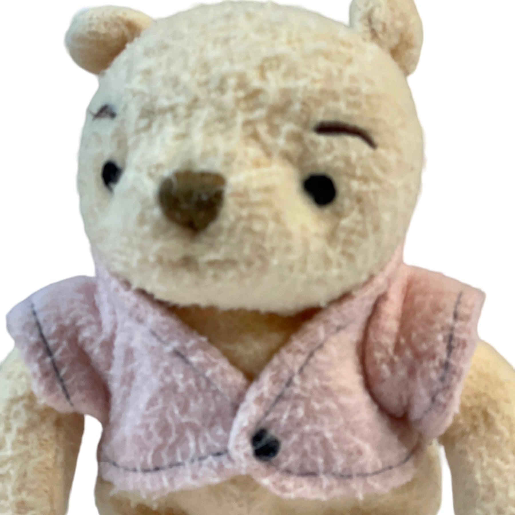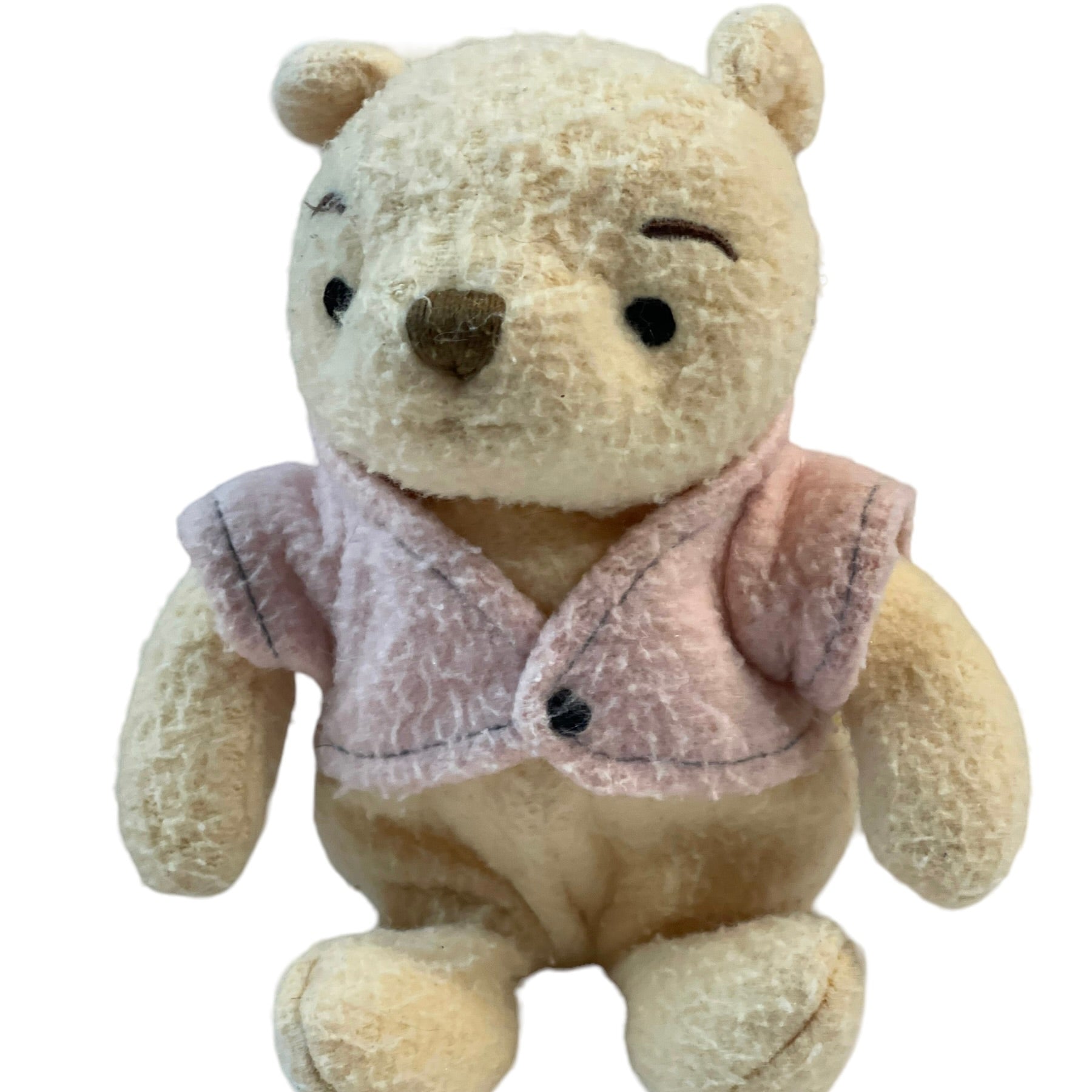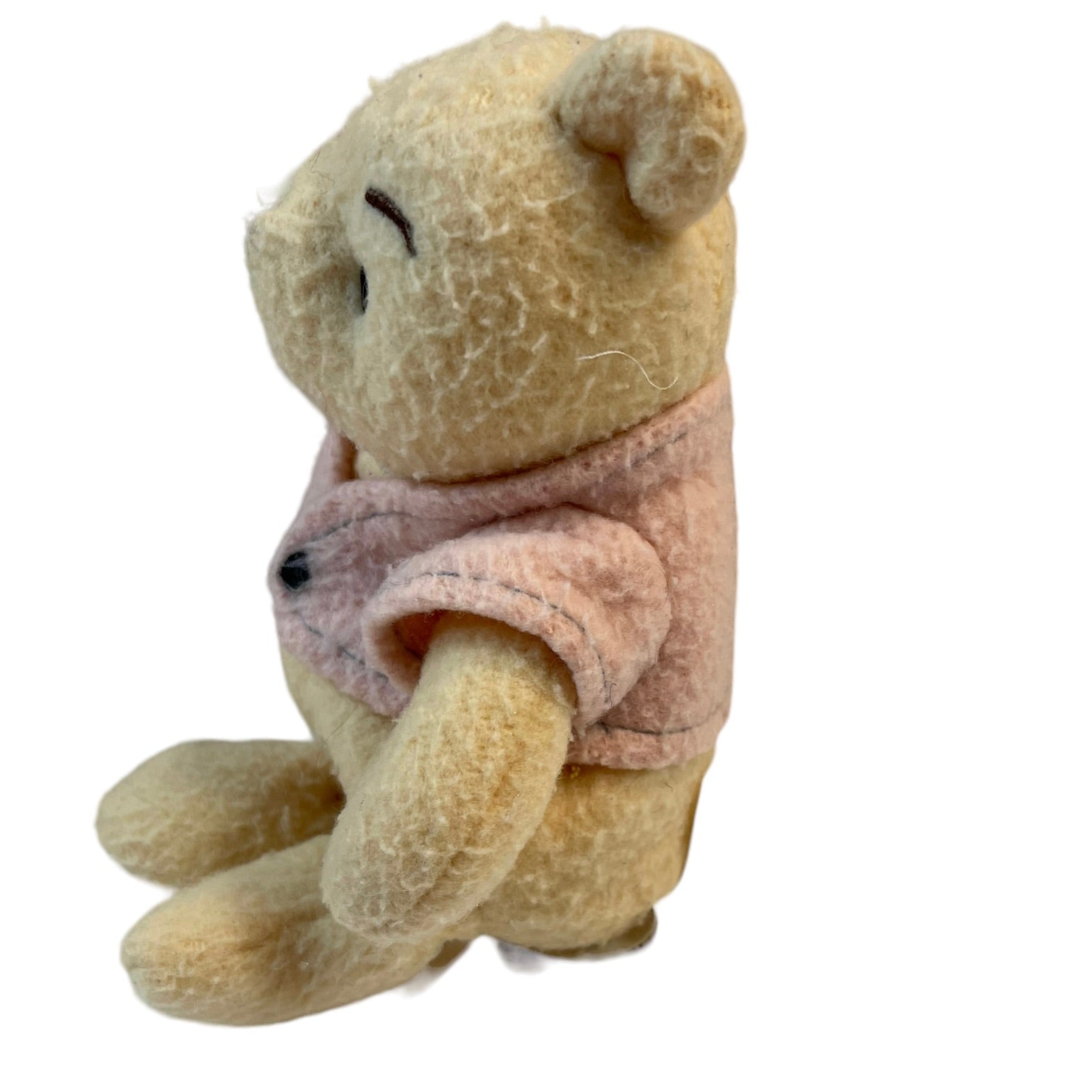 Winnie the Pooh Vintage 7" Fuzzy Fleece Plush Stuffed Animal Toy, Embroidered Face Pink Shirt