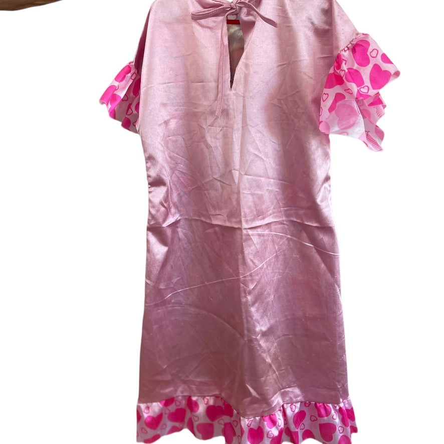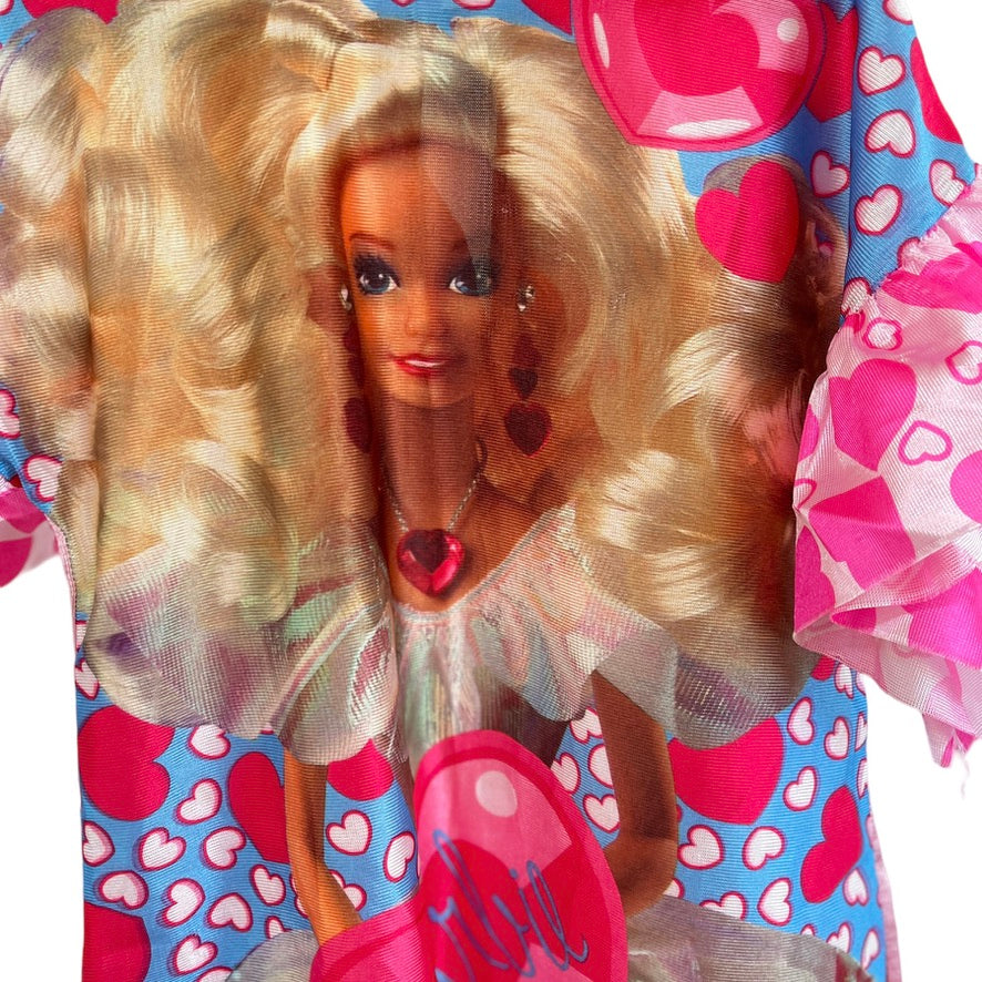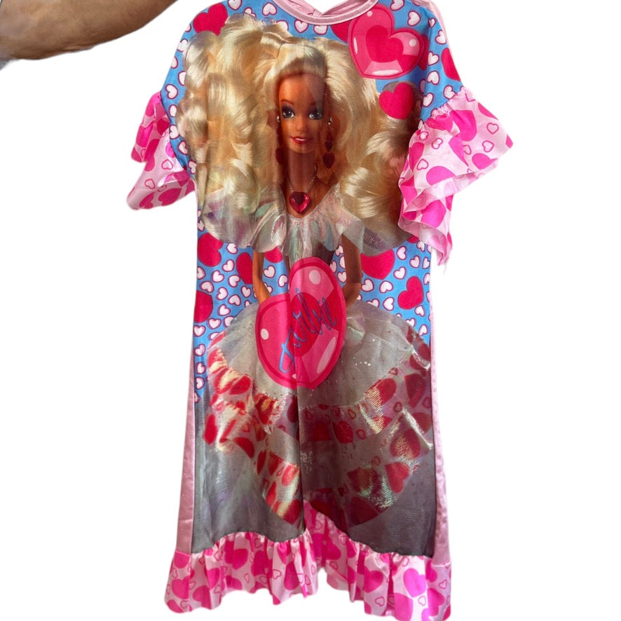 Vintage Barbie Childs' Nightgown from the 80's/90's Pink with Barbie Print, Tie Back in EUC