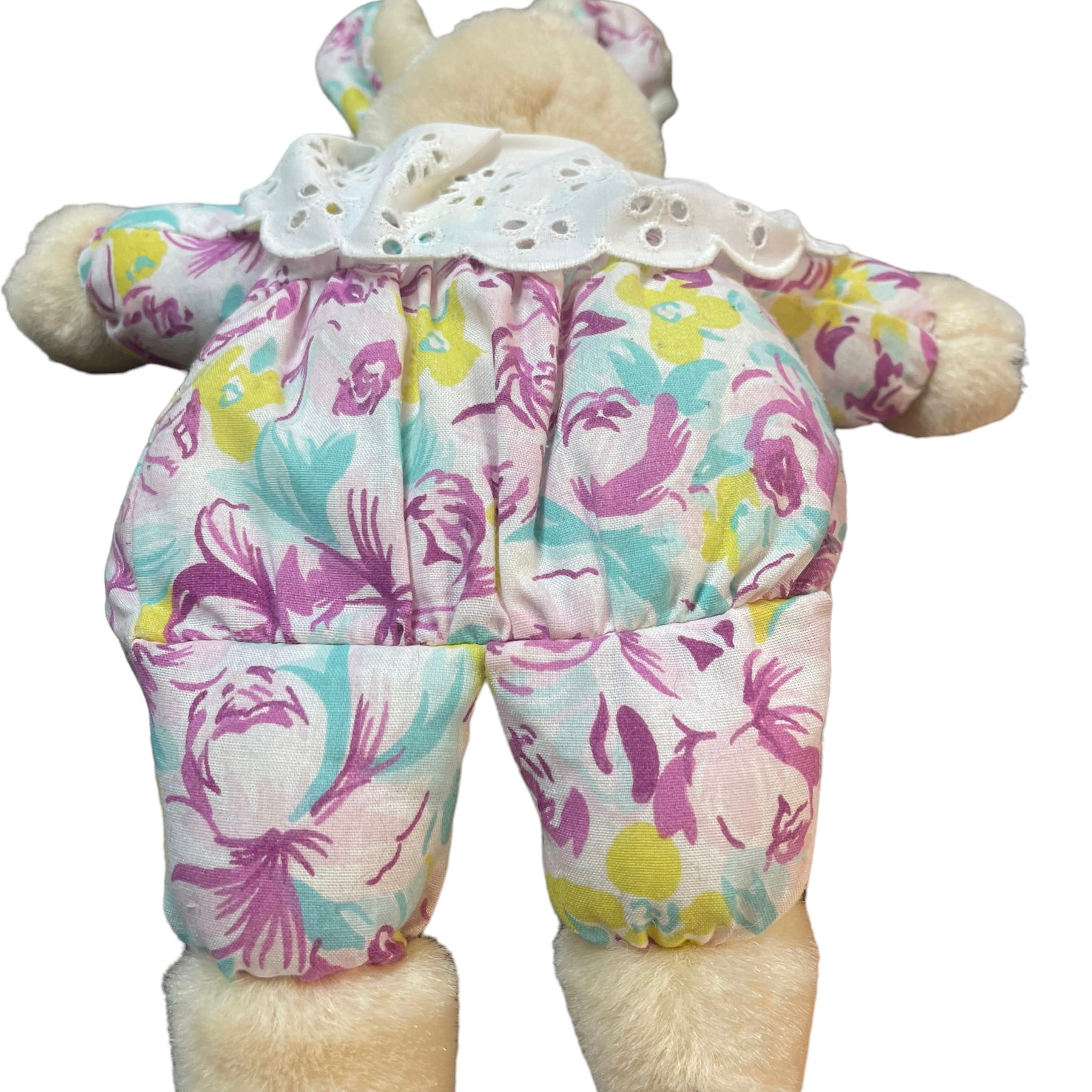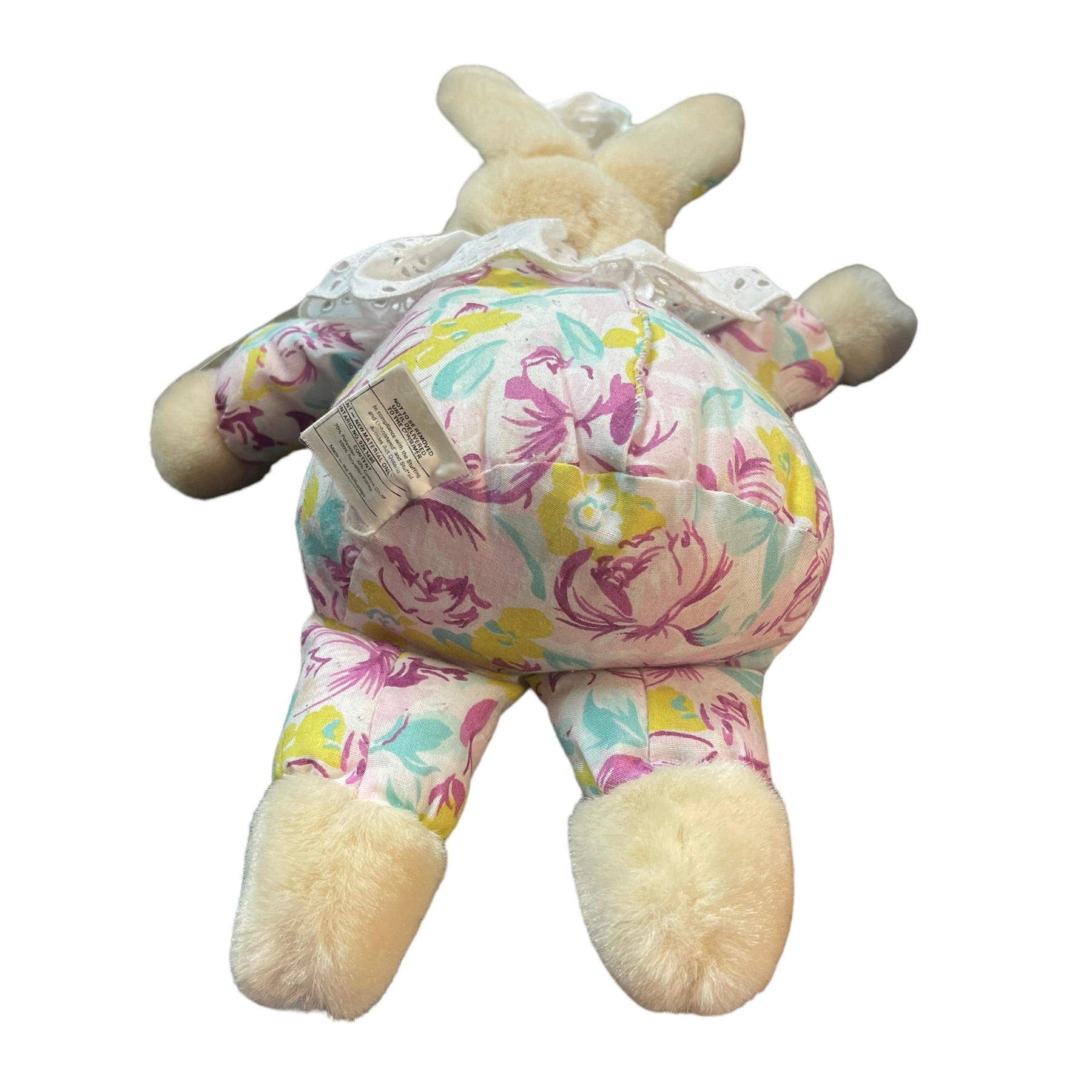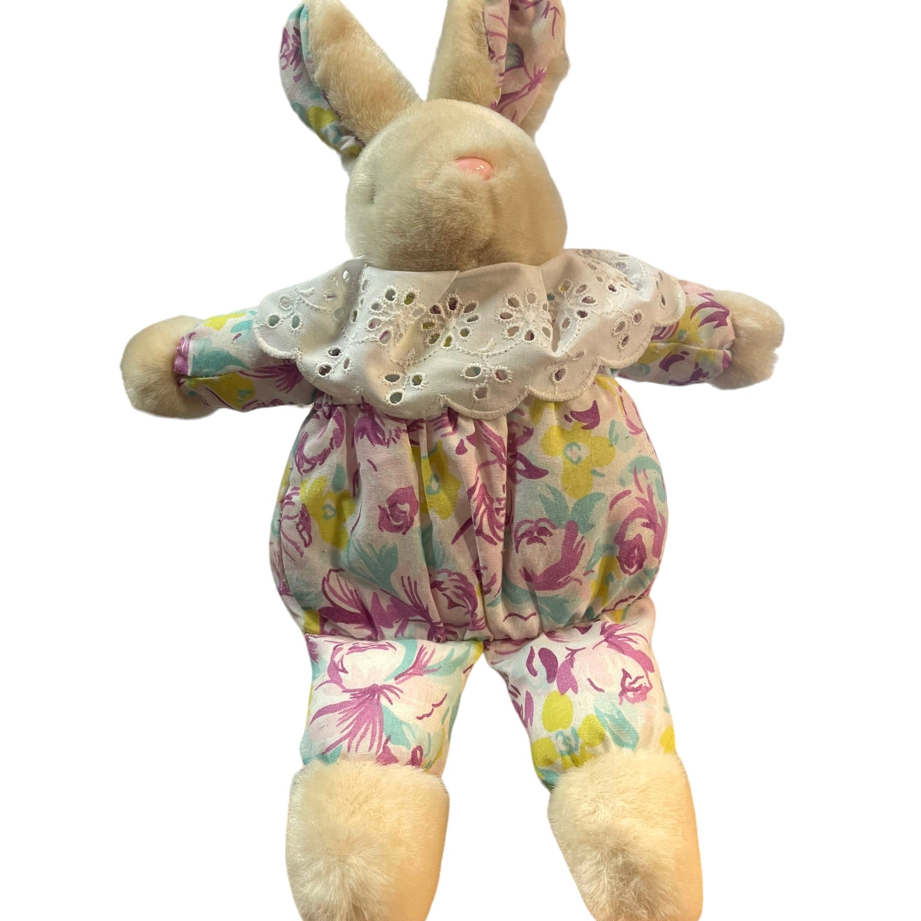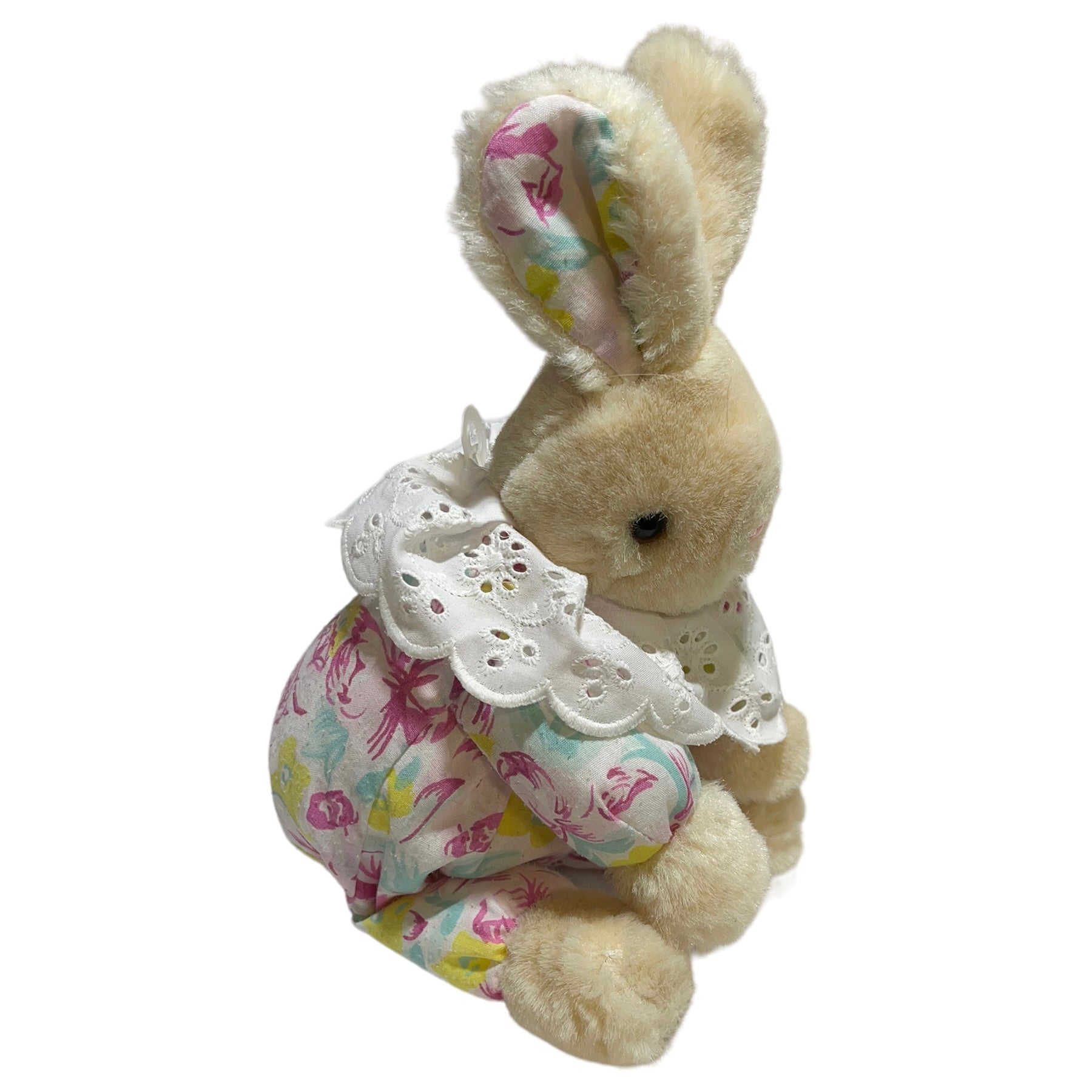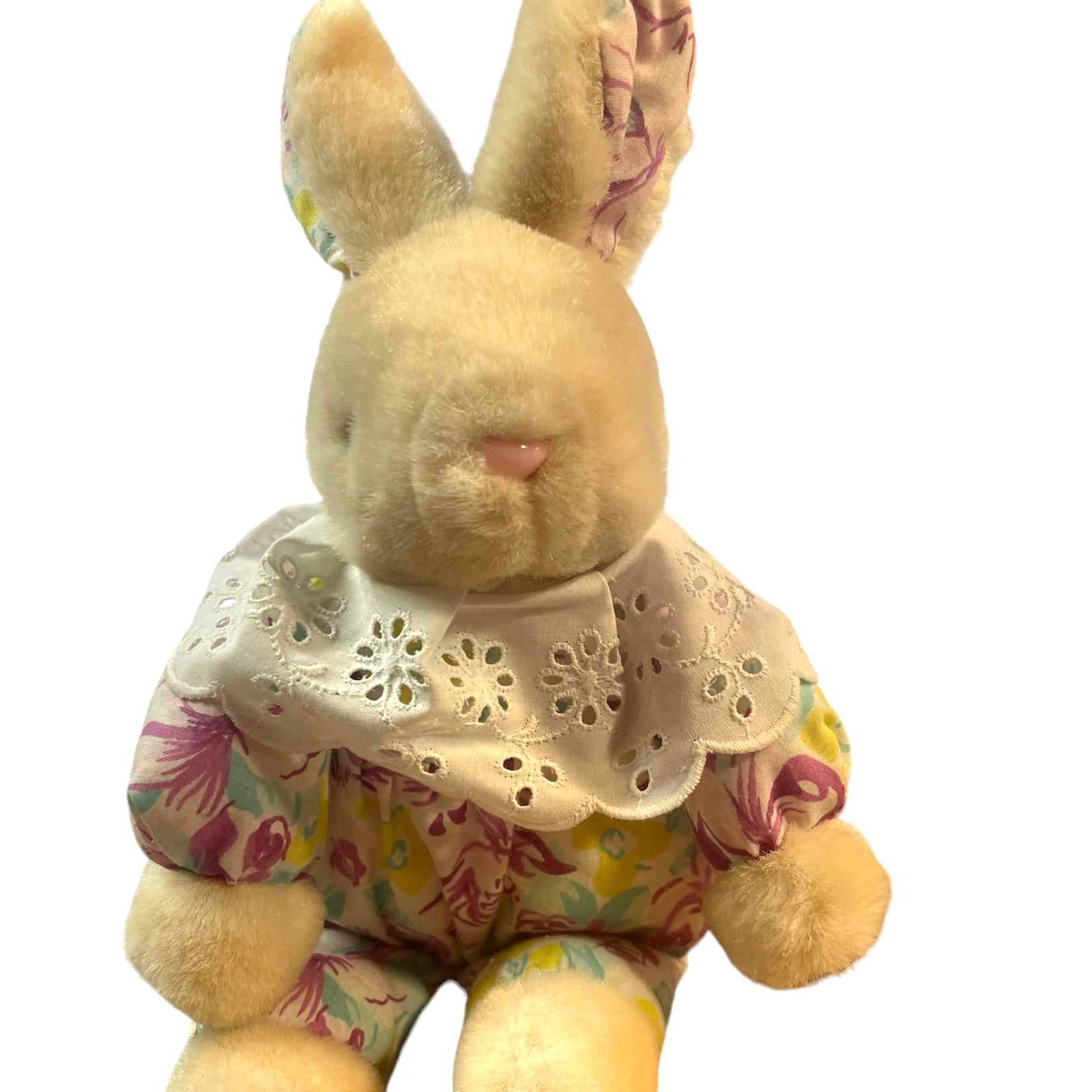 Vintage Bunny Rabbit Plush Floral Ears & Outfit with Eyelet Ruffle Collar GUC