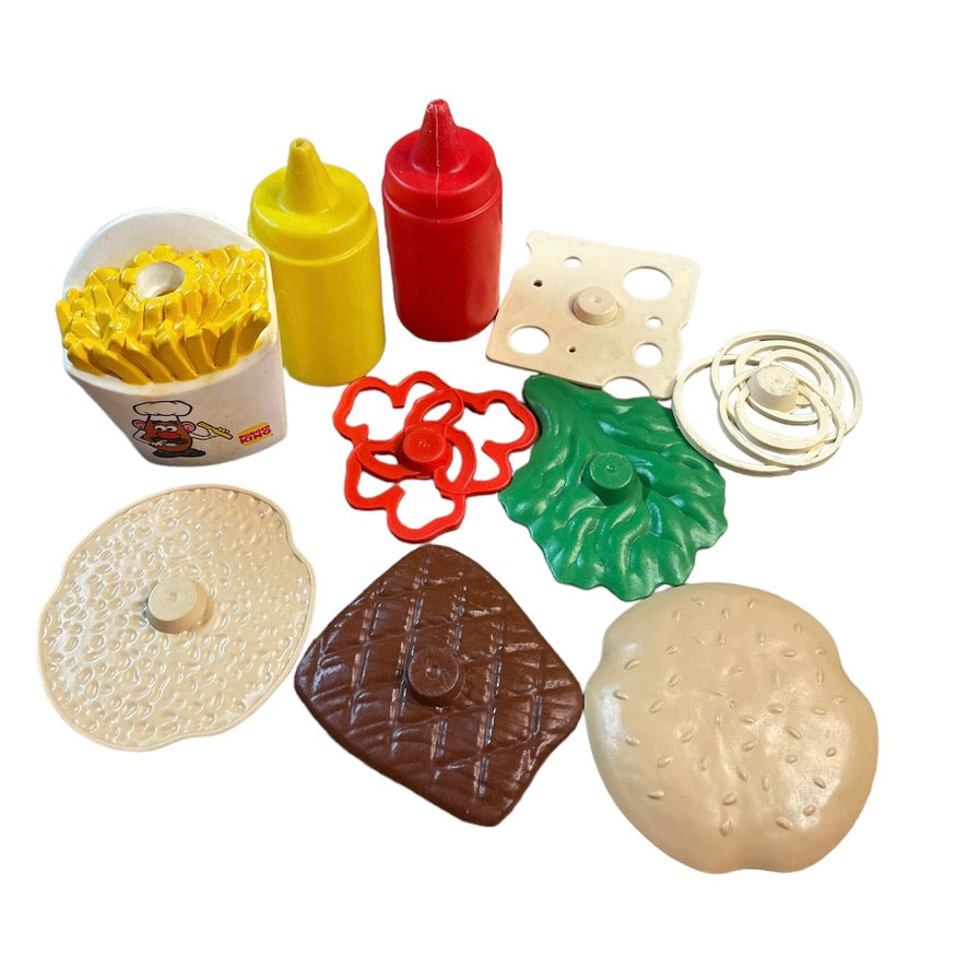 Vintage Fast Food Toys Including Burger King Fries, Condiments and 8 Piece Burger!