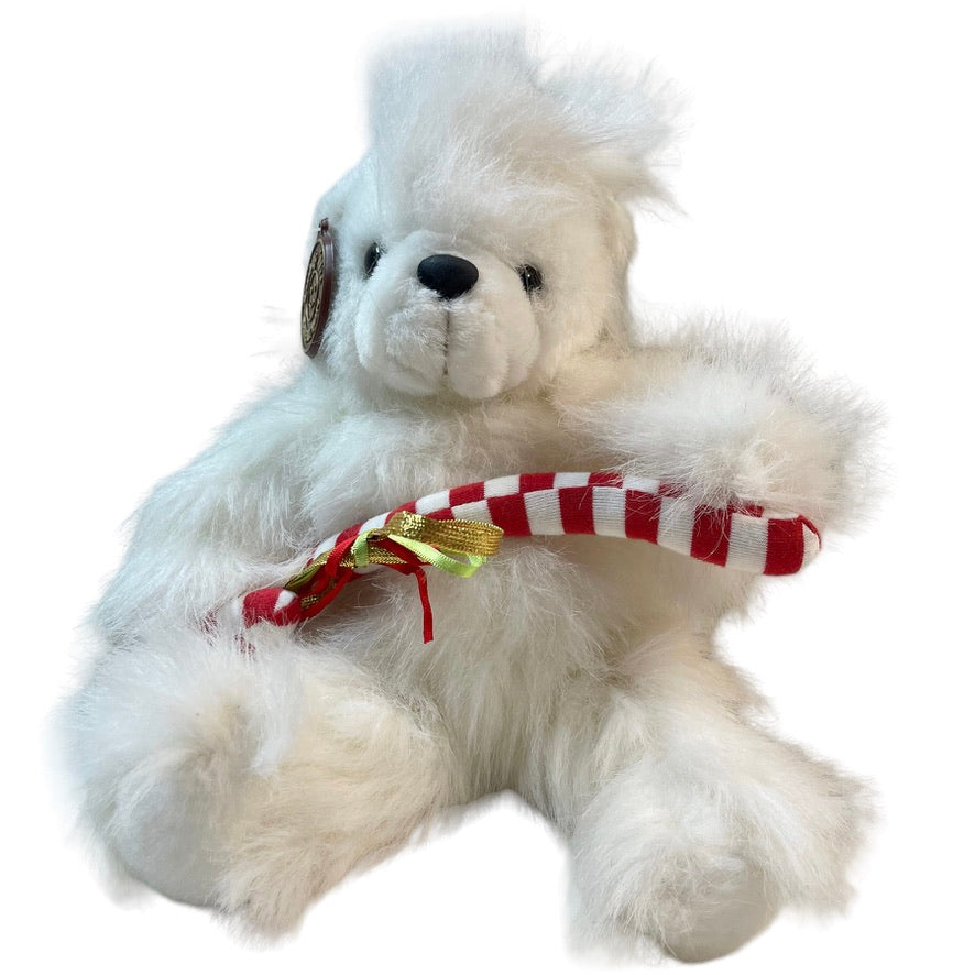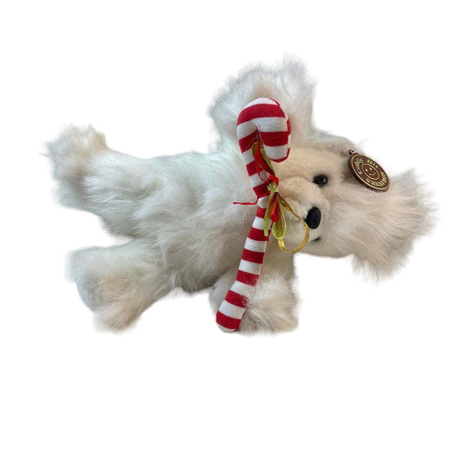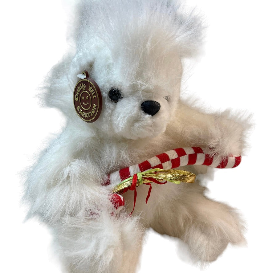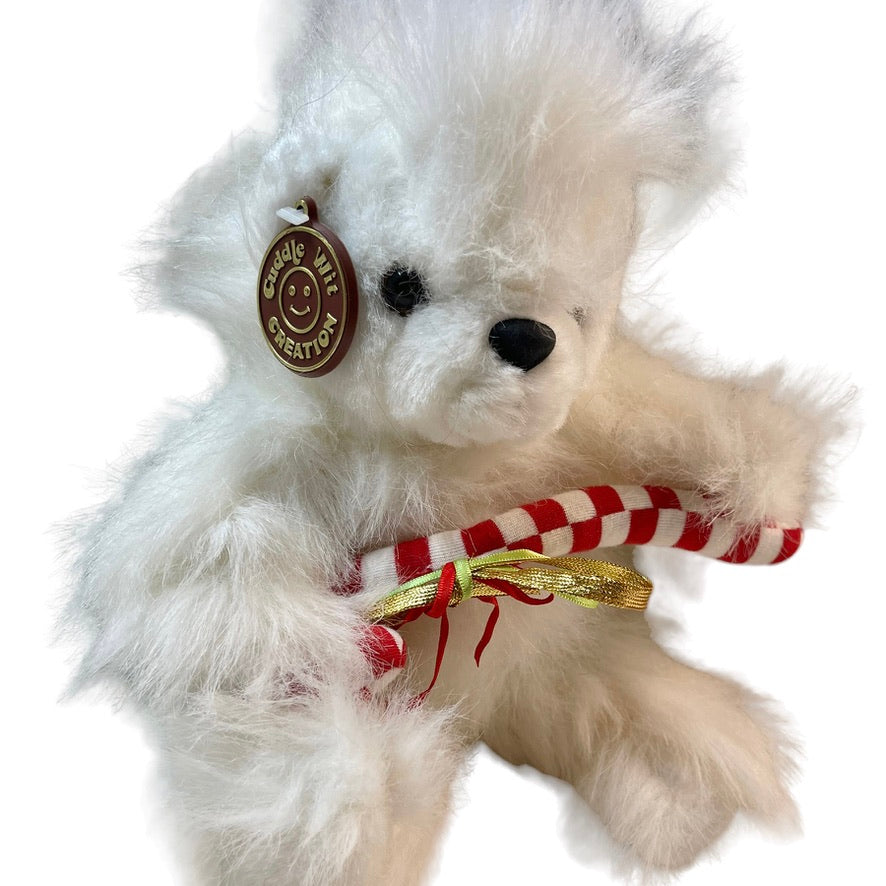 Vintage Cuddle Wit Shaggy White Stuffed Animal Plush with Striped Candy Cane