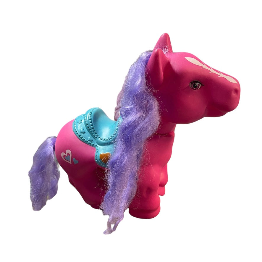 Vintage Fuchsia Hasbro 1990's My Little Pony Cabbage Patch Horseshoe Aqua Saddle with Pink Hearts