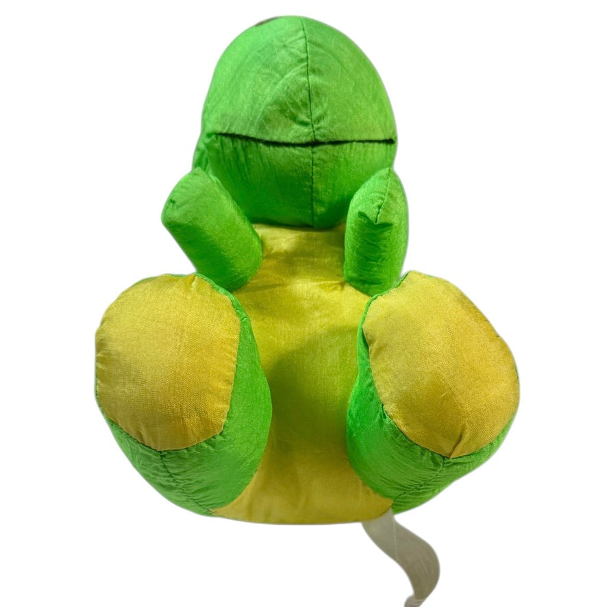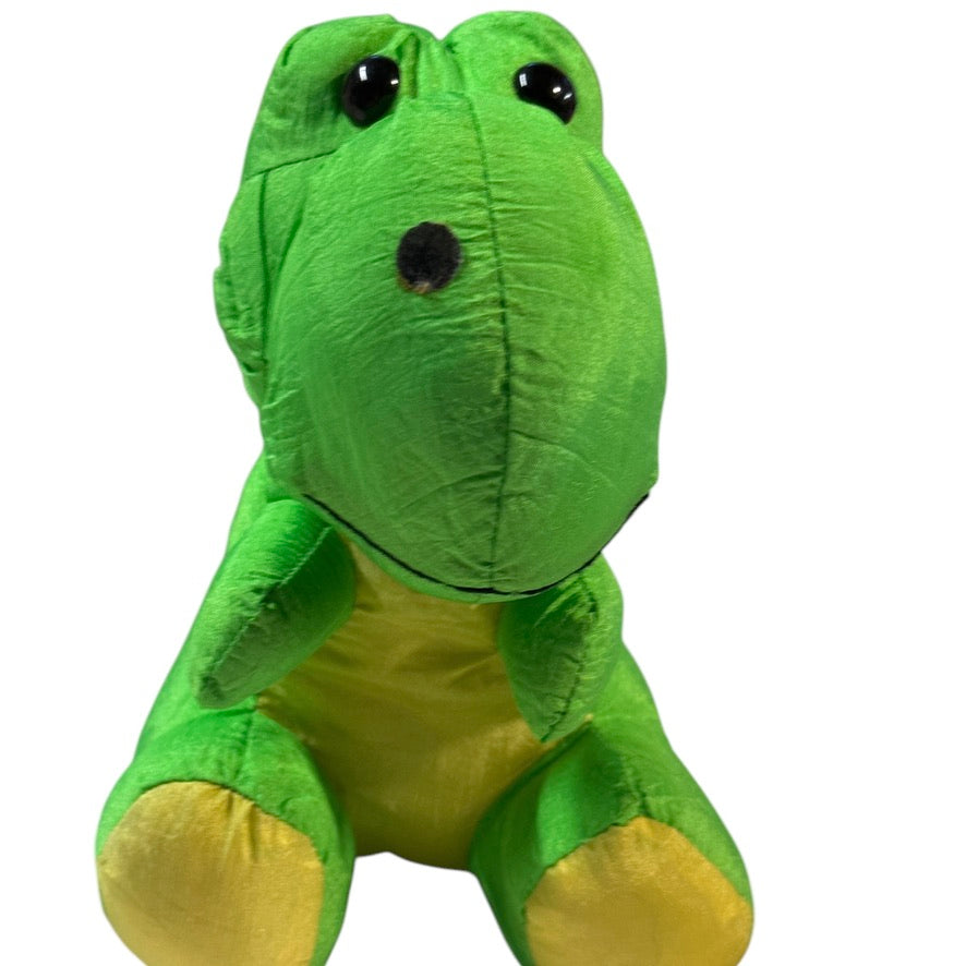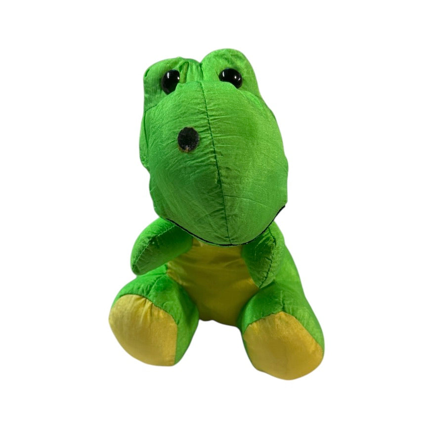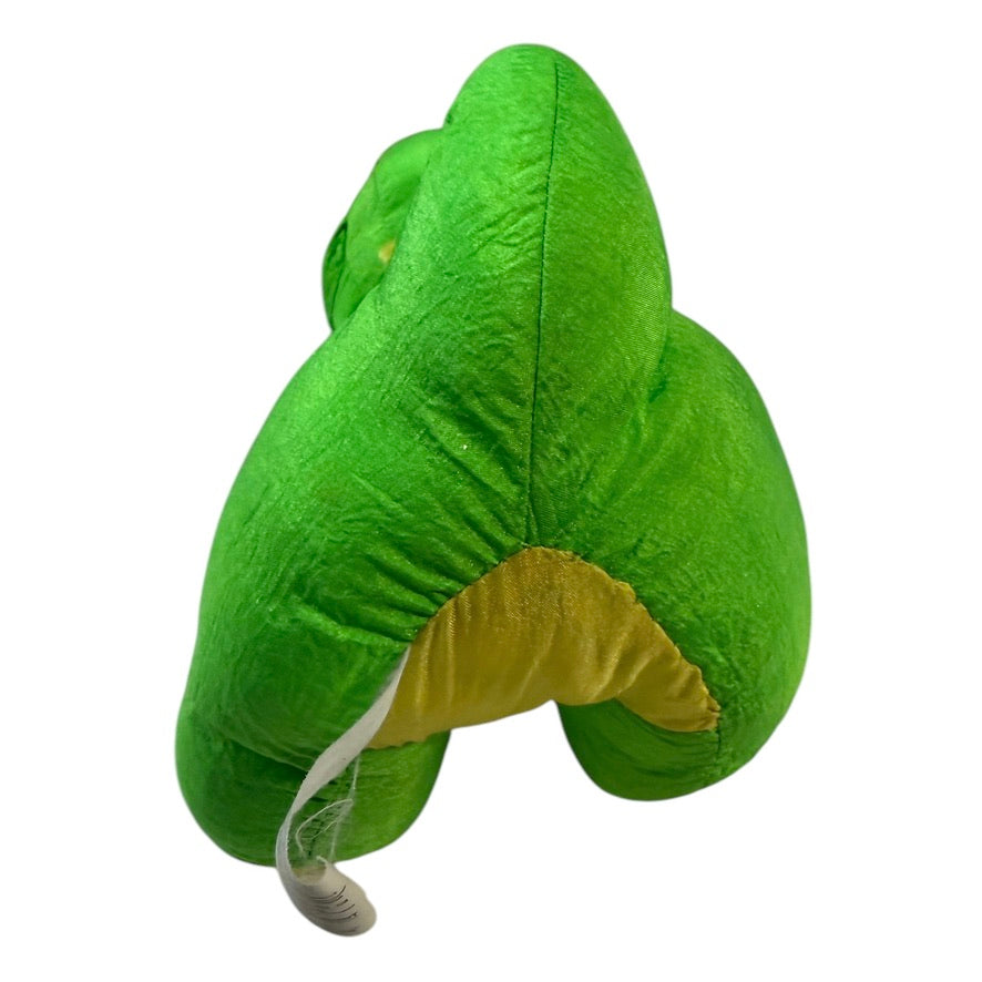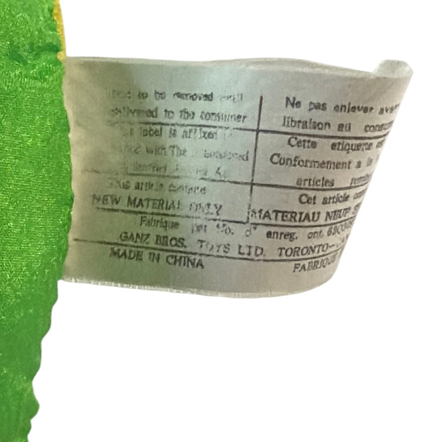 This fun little green dinosaur is made by Ganz from parachute fabric in lime green and yellow. Despite a missing black felt nostril. this guy is in good preowned condition.