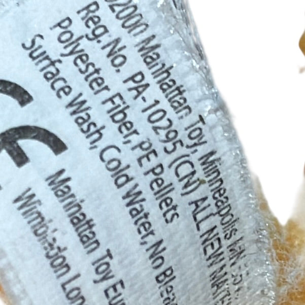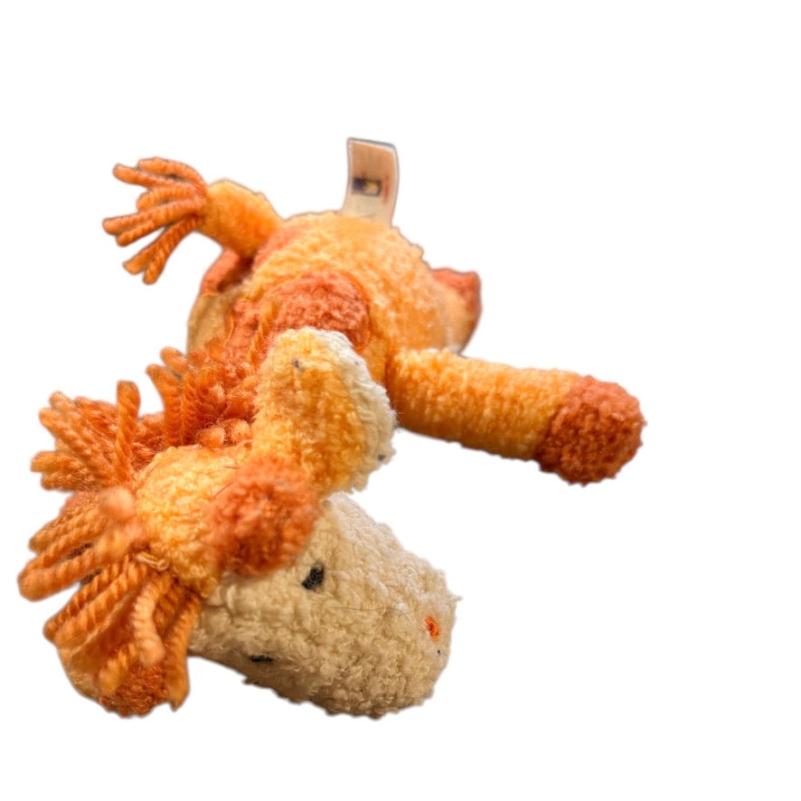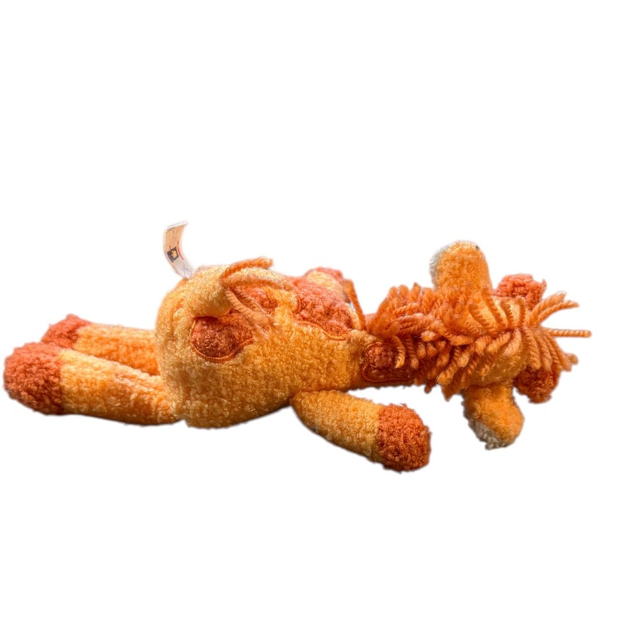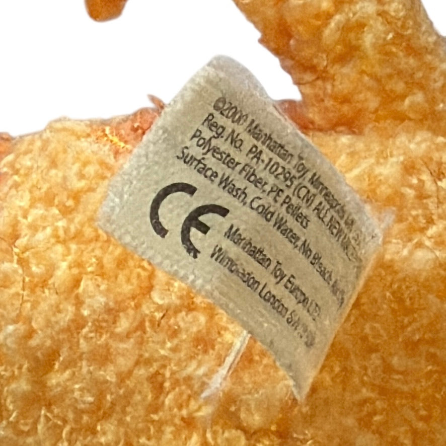 Vintage Sweetest little Manhattan Toy plush giraffe, brightly coloured in shades of orange, with Orange wool Mane and Tail. The perfect size for little hands.