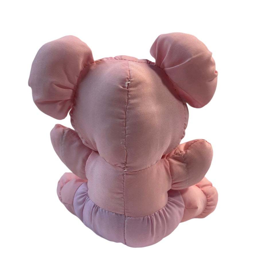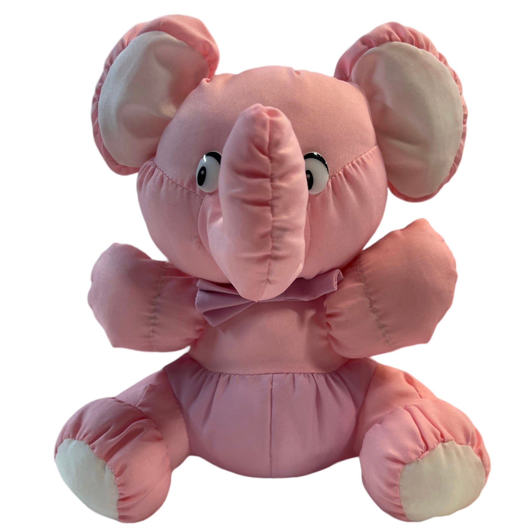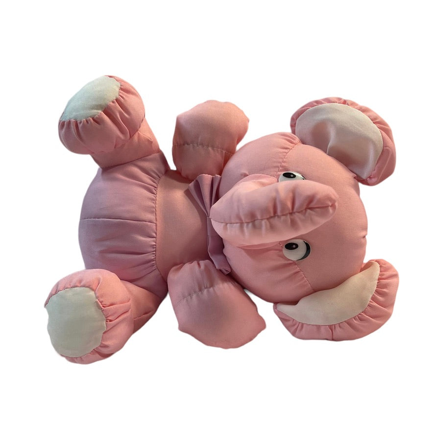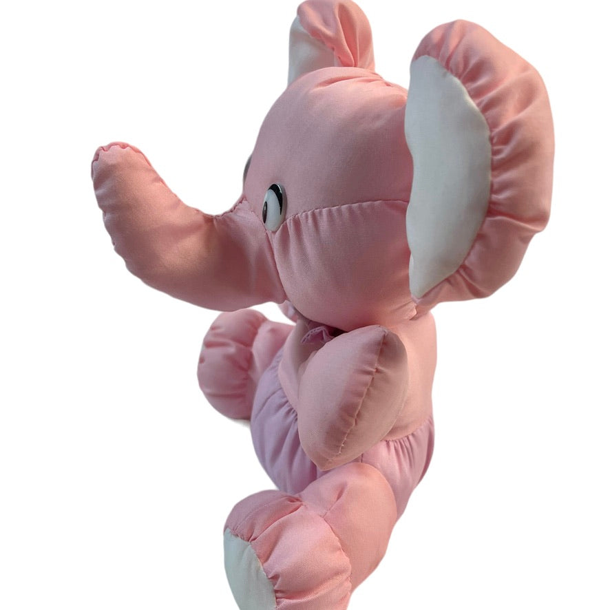 Pink Nylon Elephant, Raised Trunk,Vintage Parachute Fabric, Shiny Plastic Eyes and Pink Bow Tie