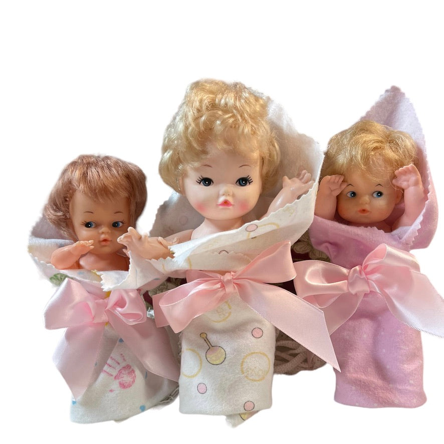 Vintage Lot of 3 Plastic Baby Dolls with Receiving Blankets in GUC