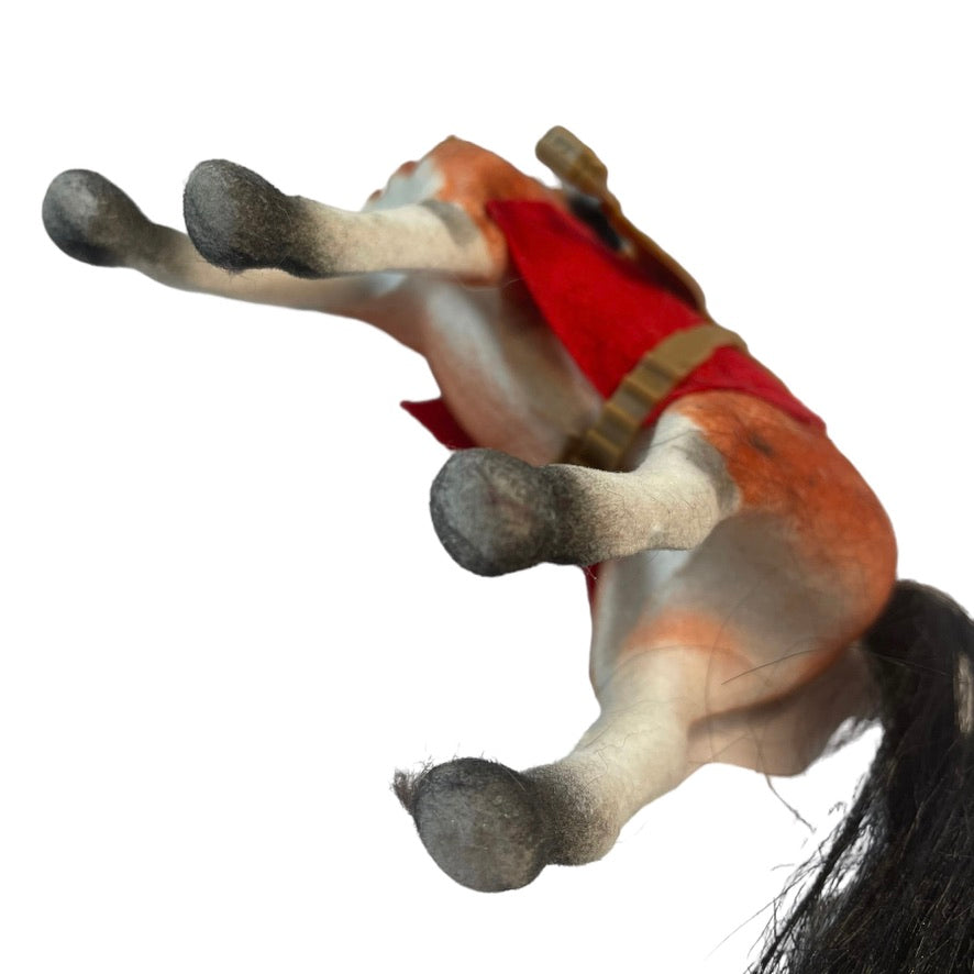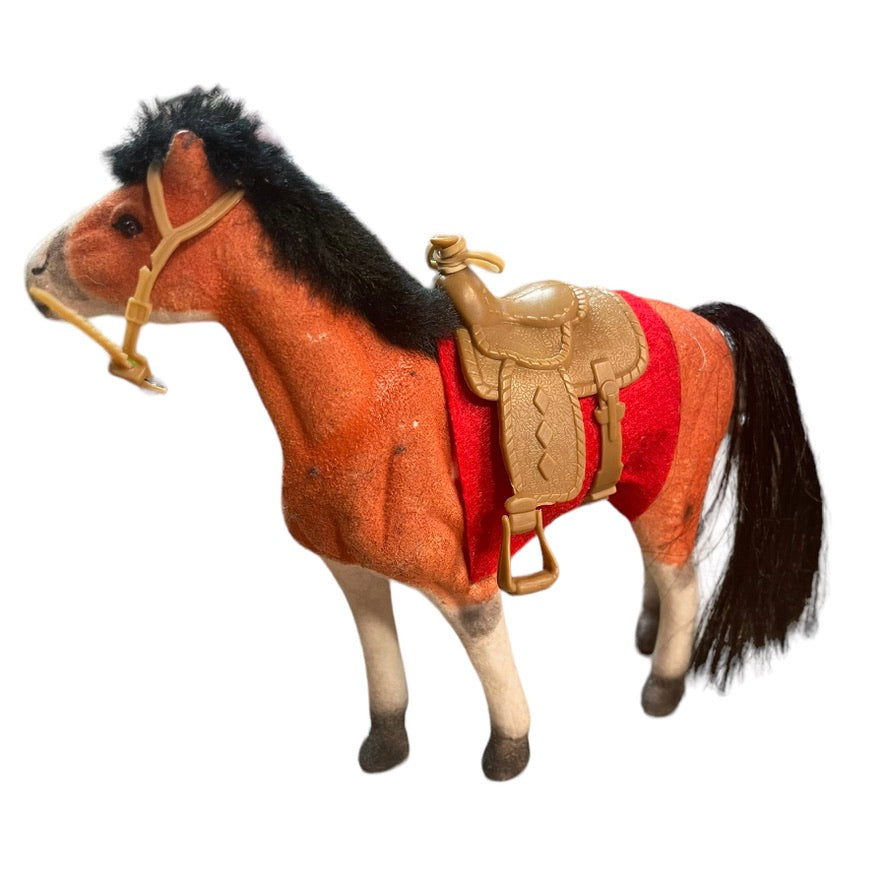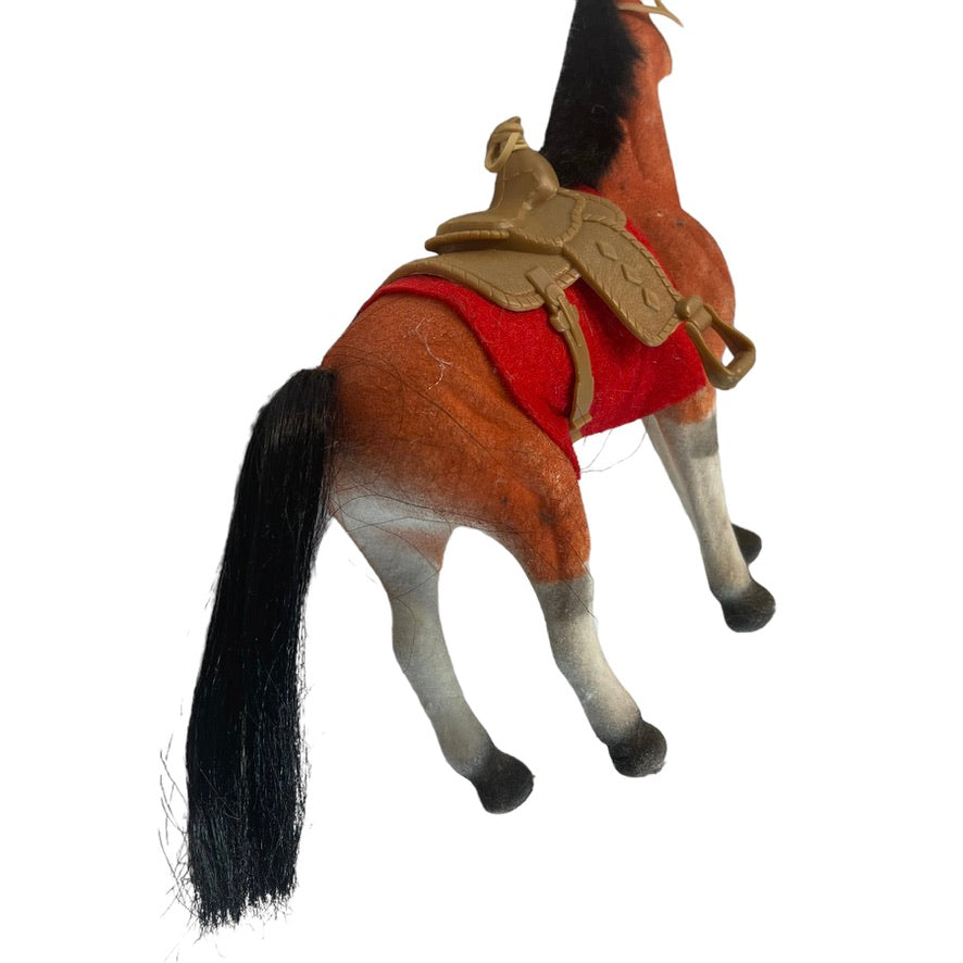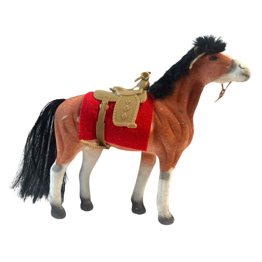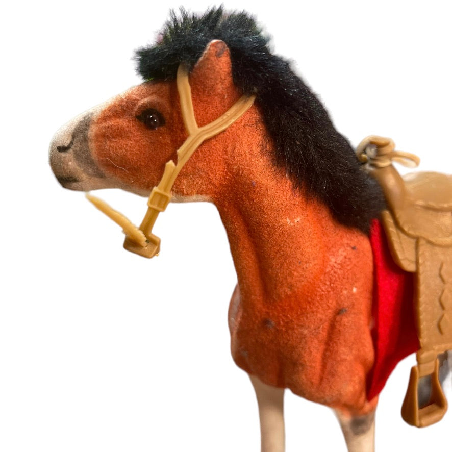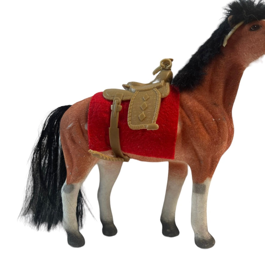 Vintage Toy Plastic Velvet Flocked Coated Felt Brown Horse & Saddle