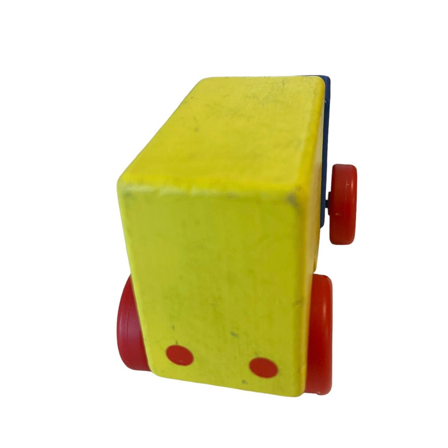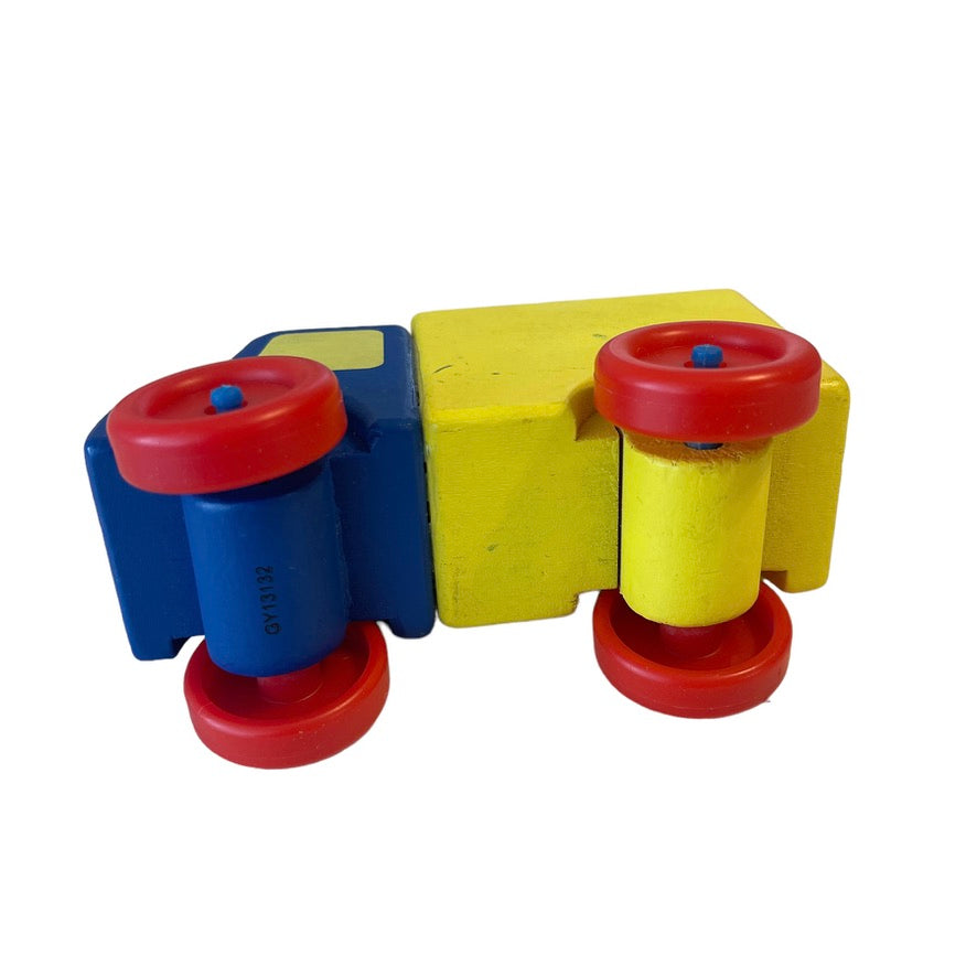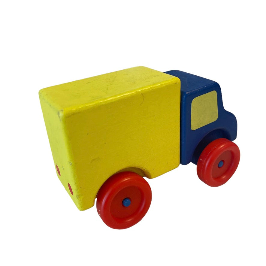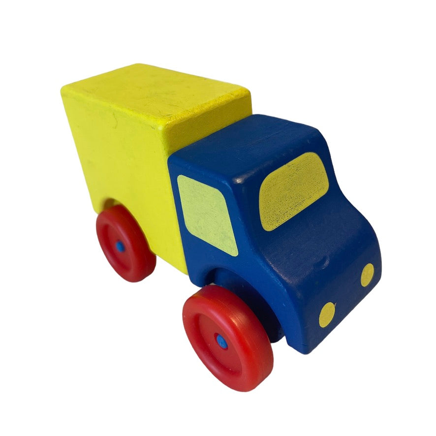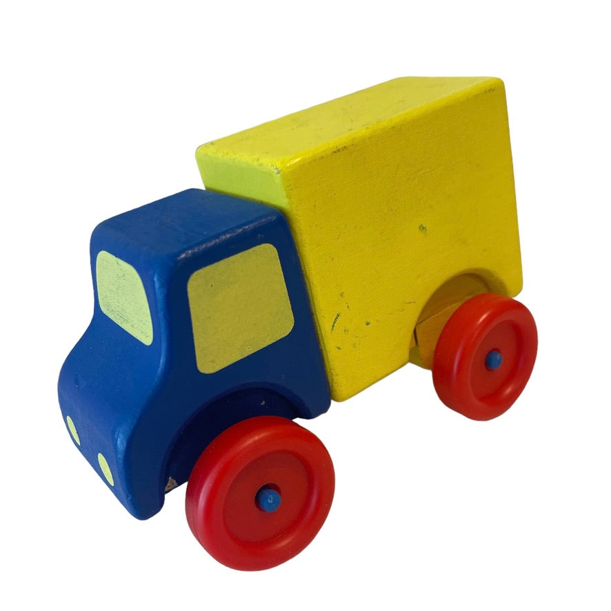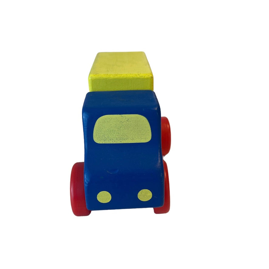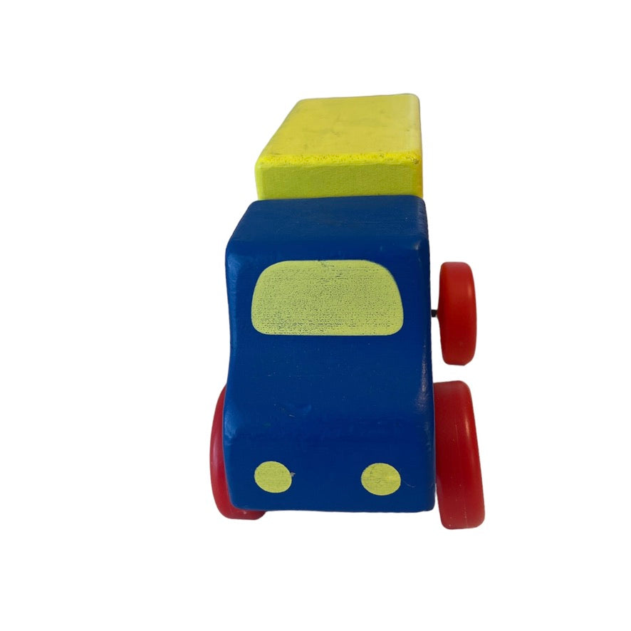 Heavy Wooden Truck, Blue & Yellow with Plastic Wheels. Unbranded and very durable. Good for many more years of play!