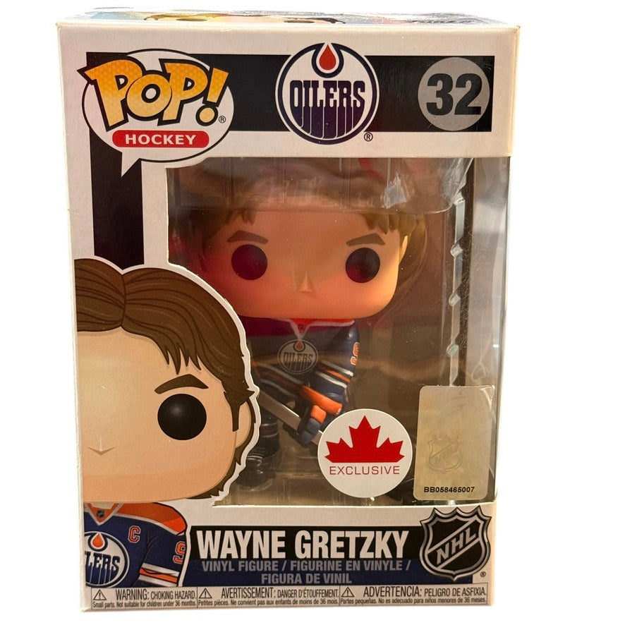 Wayne Gretzky, Canadian Classic, Oilers 32 Funko Pop Vinyl Figure, Preowned, but unused in box. Excellent Preowned Condition.
