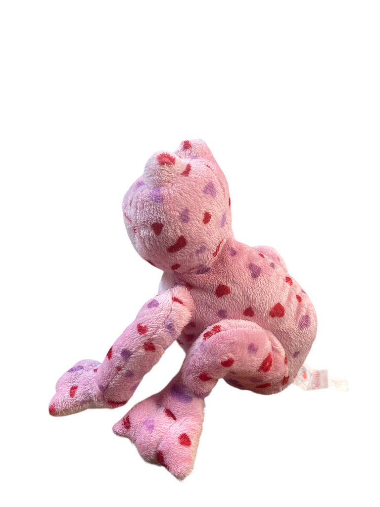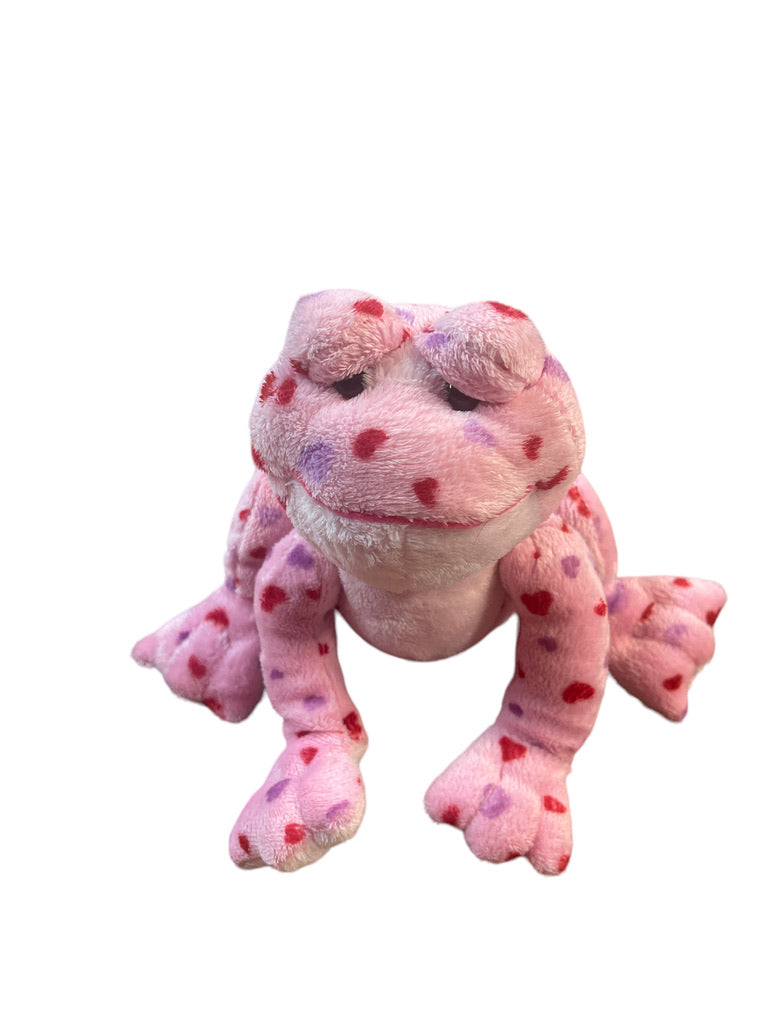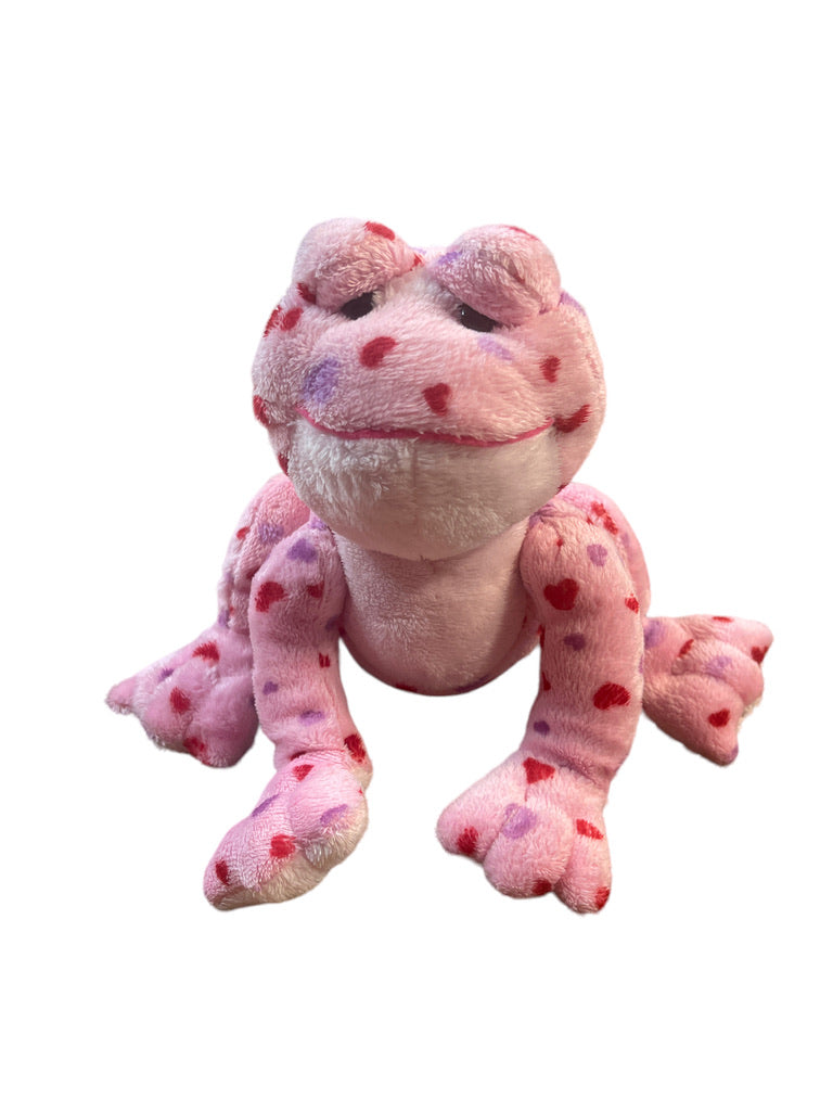 An adorable smiley Love Frog covered in pink and red hearts . Just right for Valentine's Day or for a special friend! 7" in good preowned condition.