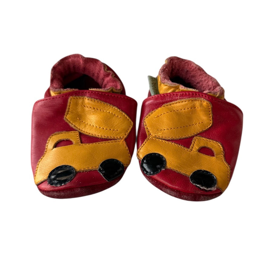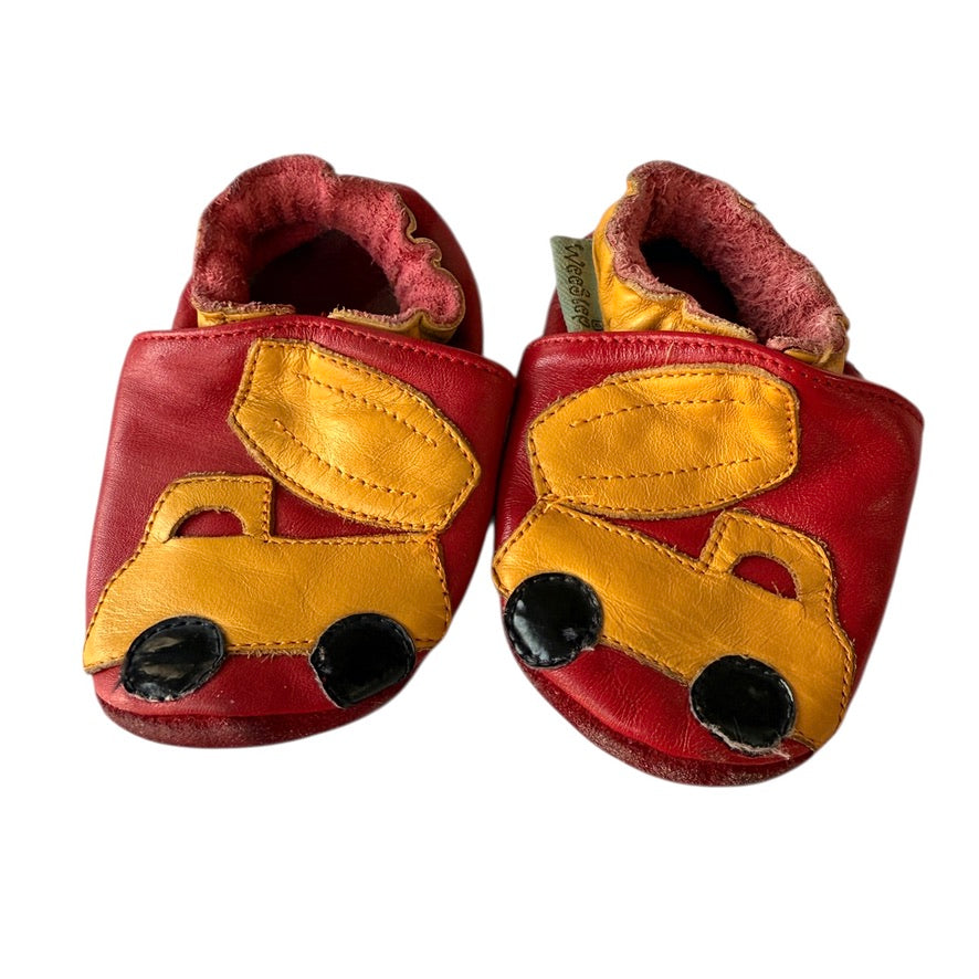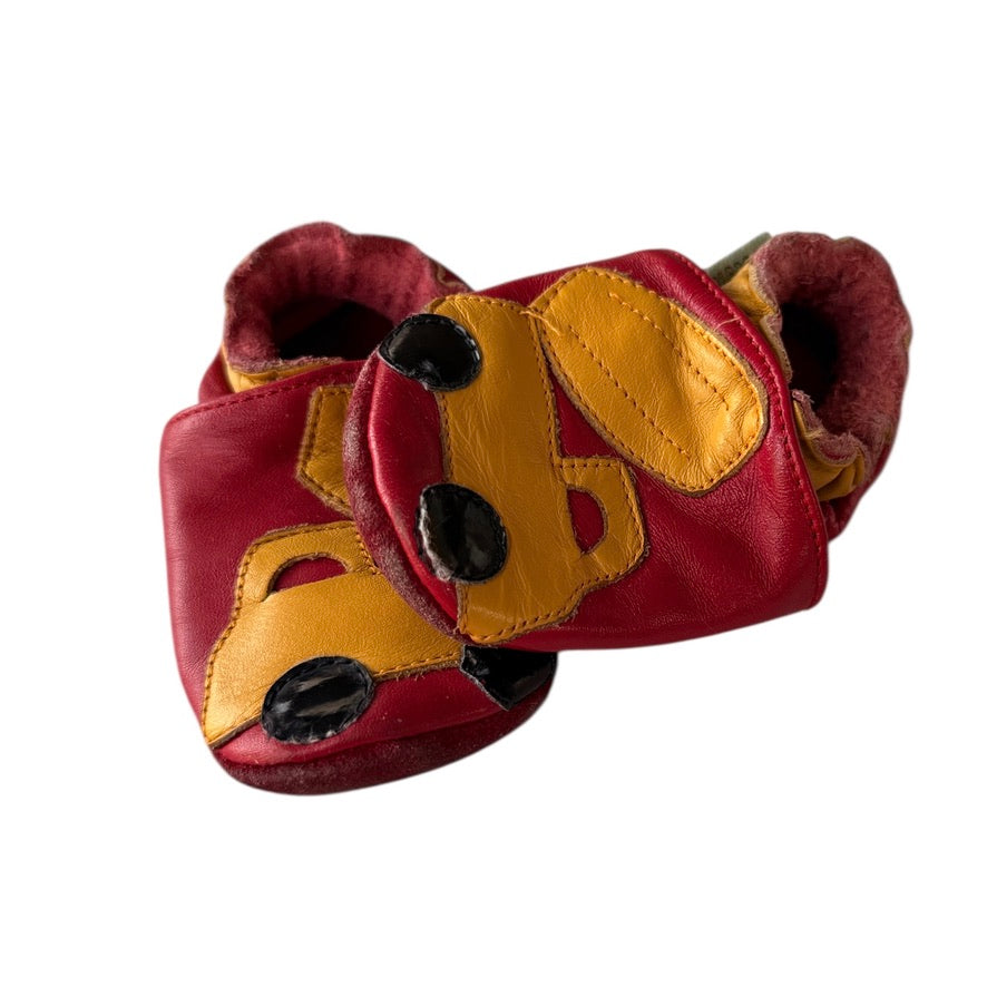 WeeStep Baby Shoes, Red/Yellow Truck Design, Leather Uppers, Suede Soles Size 6m