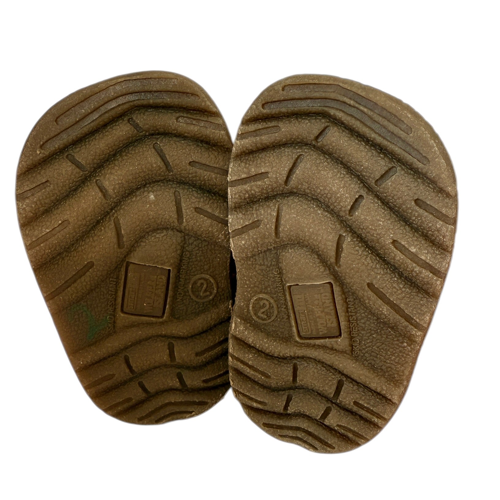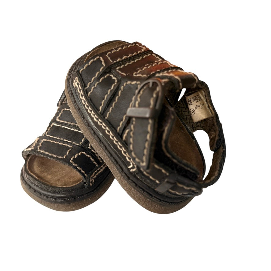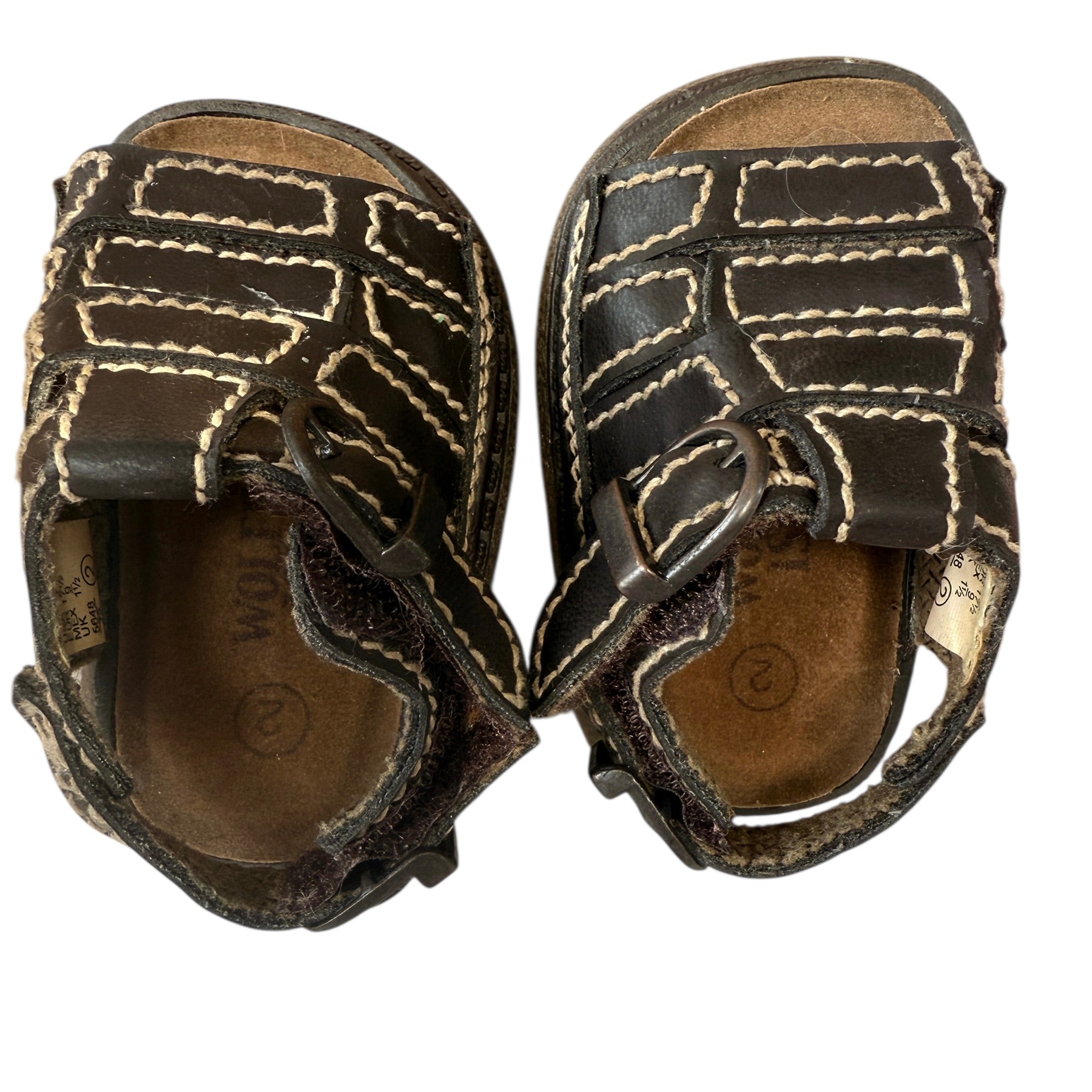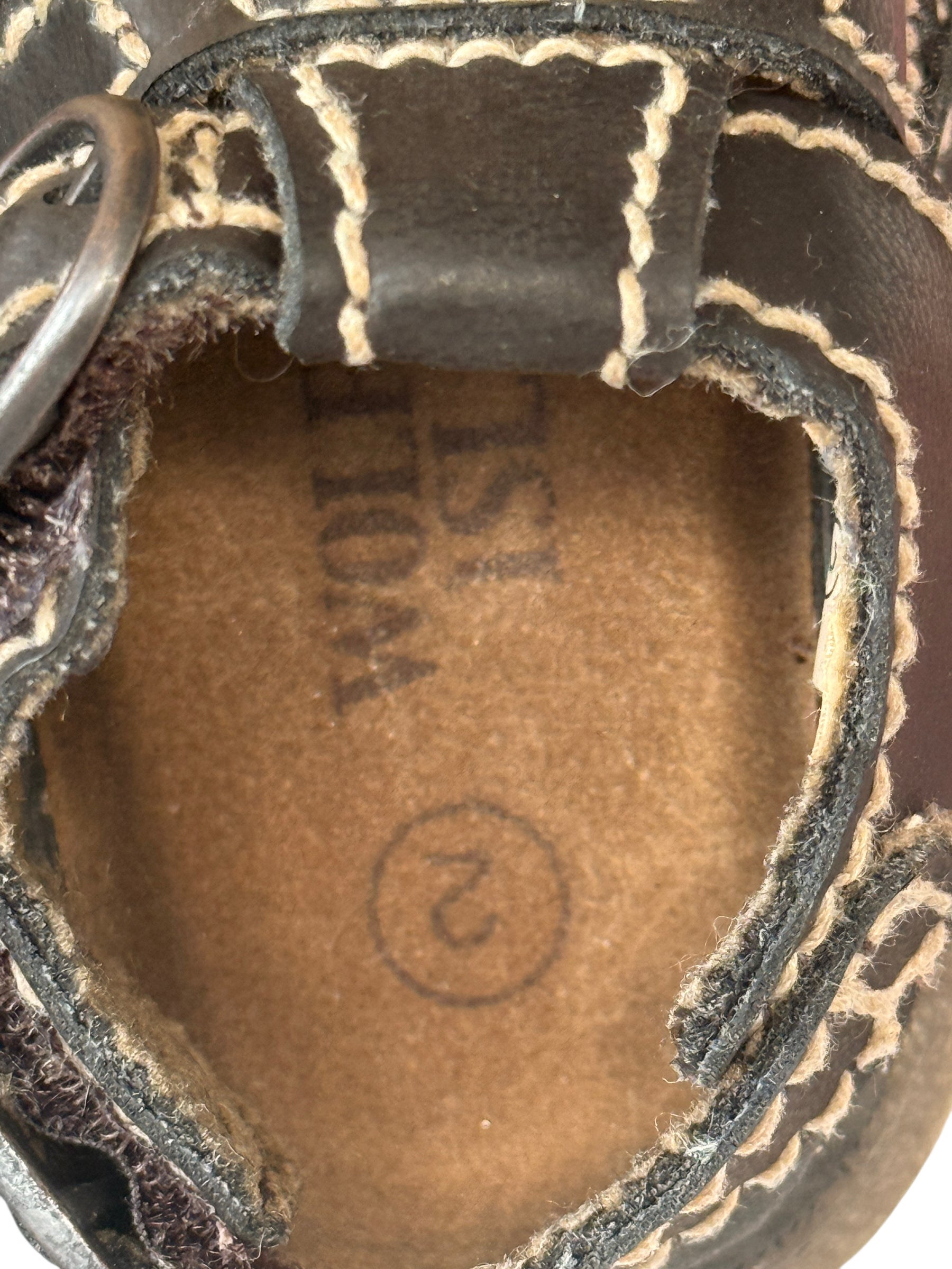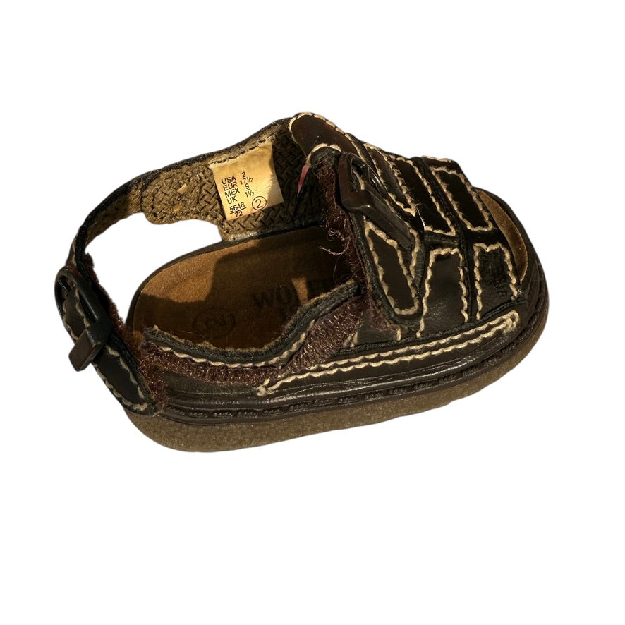 Wolfe Island Fisherman Sandals, Infant Size 2 Brown, Hook & Loop Closure Beige Stitching
