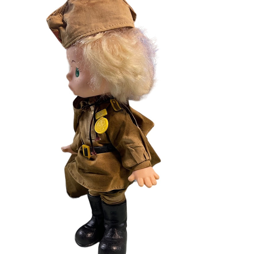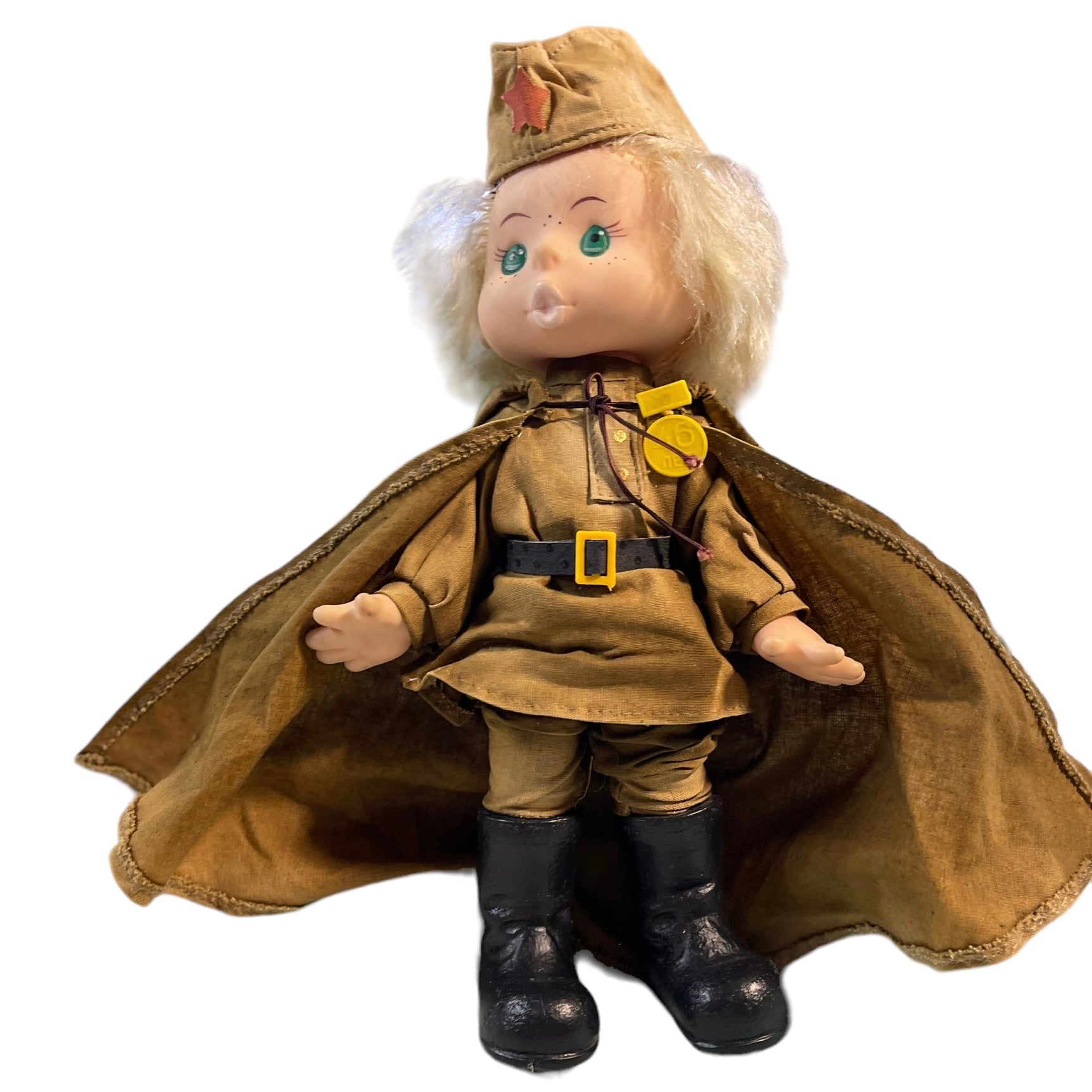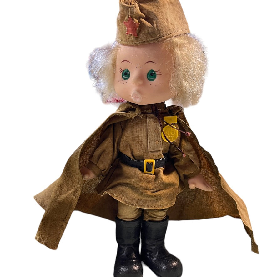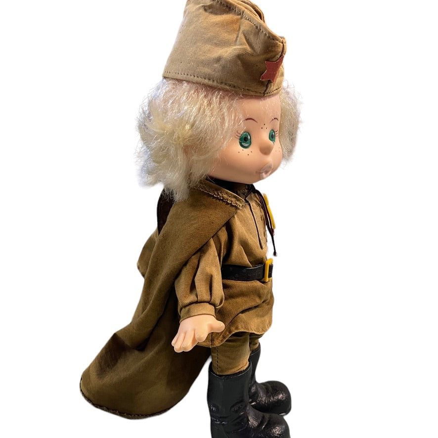 Interesting Historical 13" Vinyl Russian Female Soldier Doll complete with medals, cape, boots and beret by doll artist, Vasili Tyorkin. Excellent preowned condition.