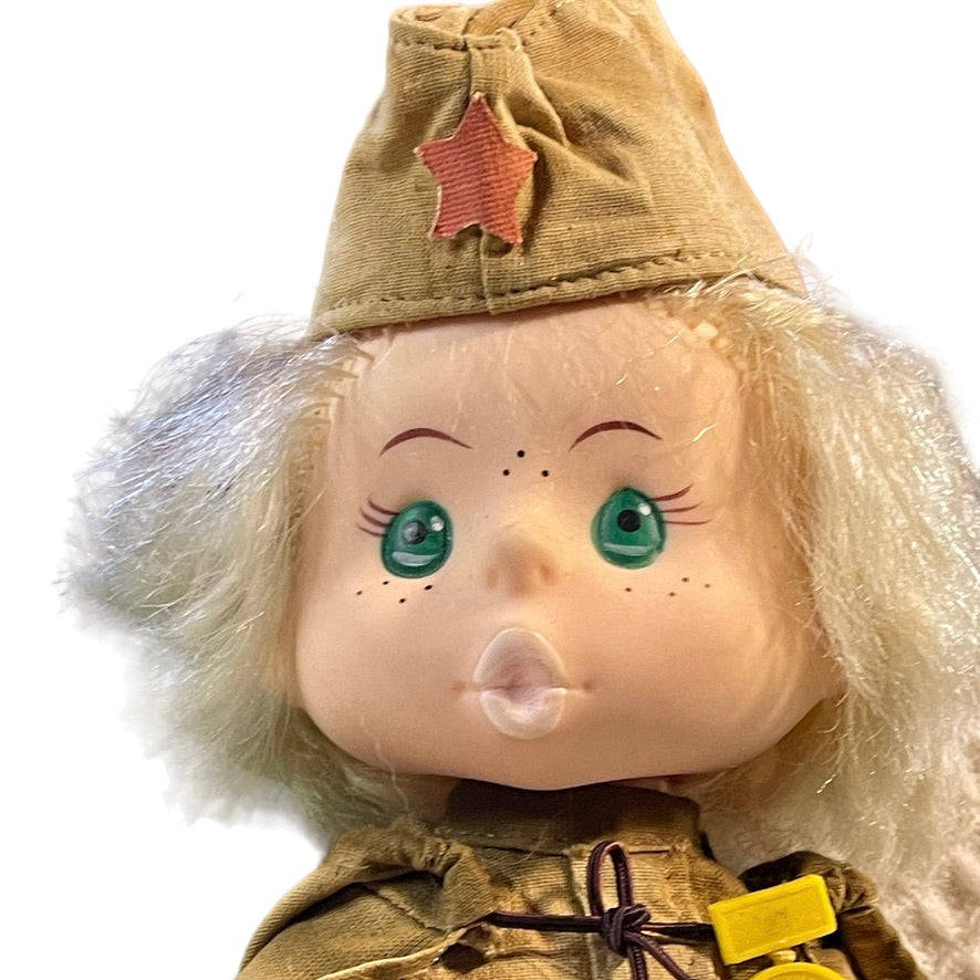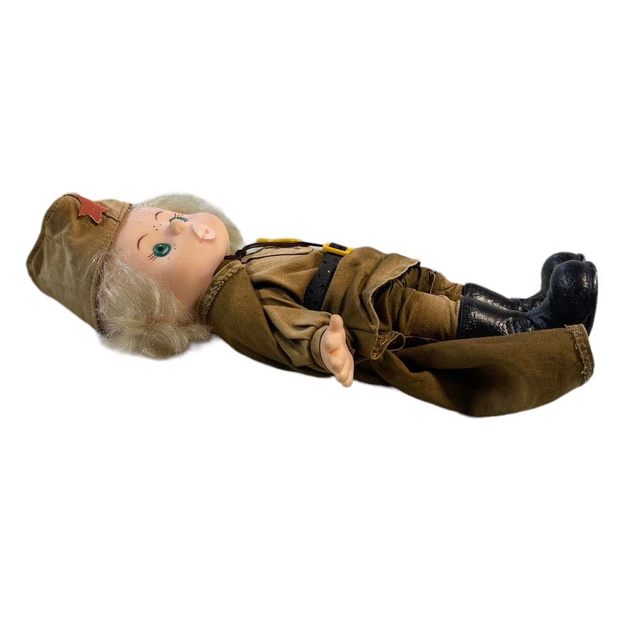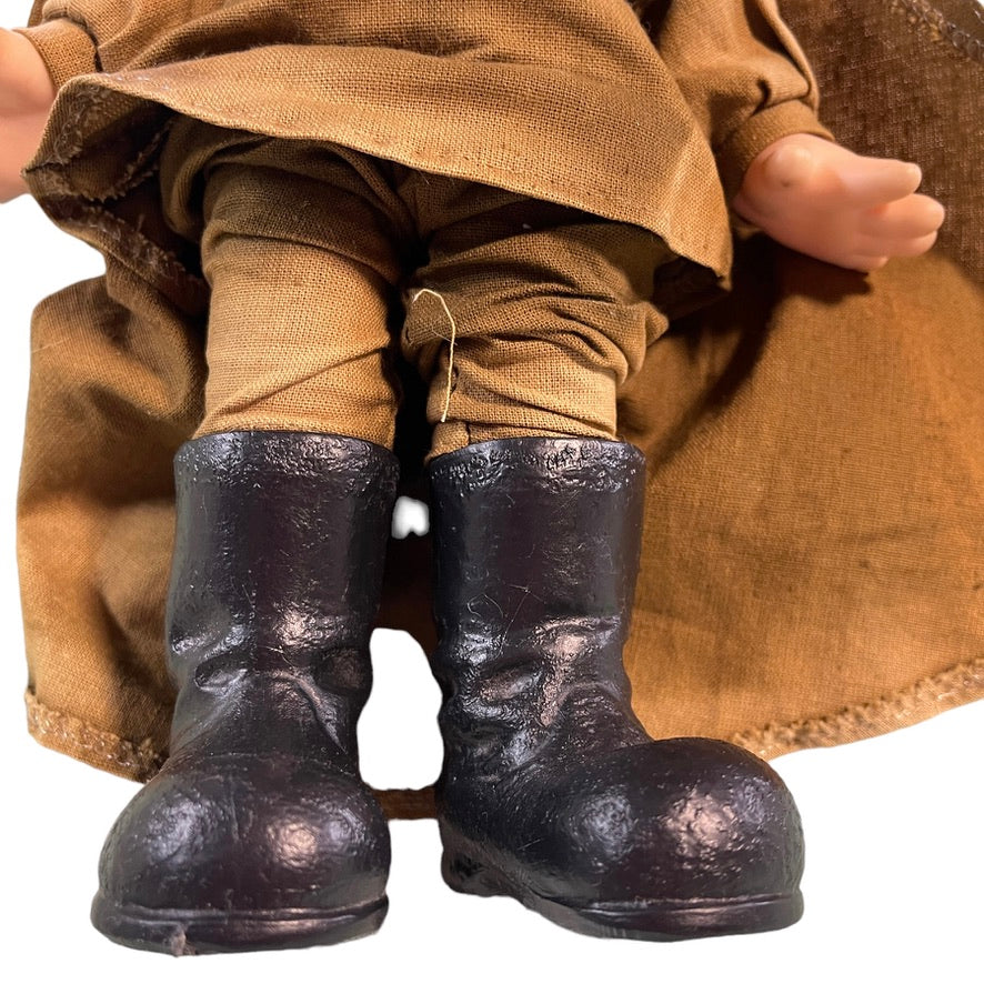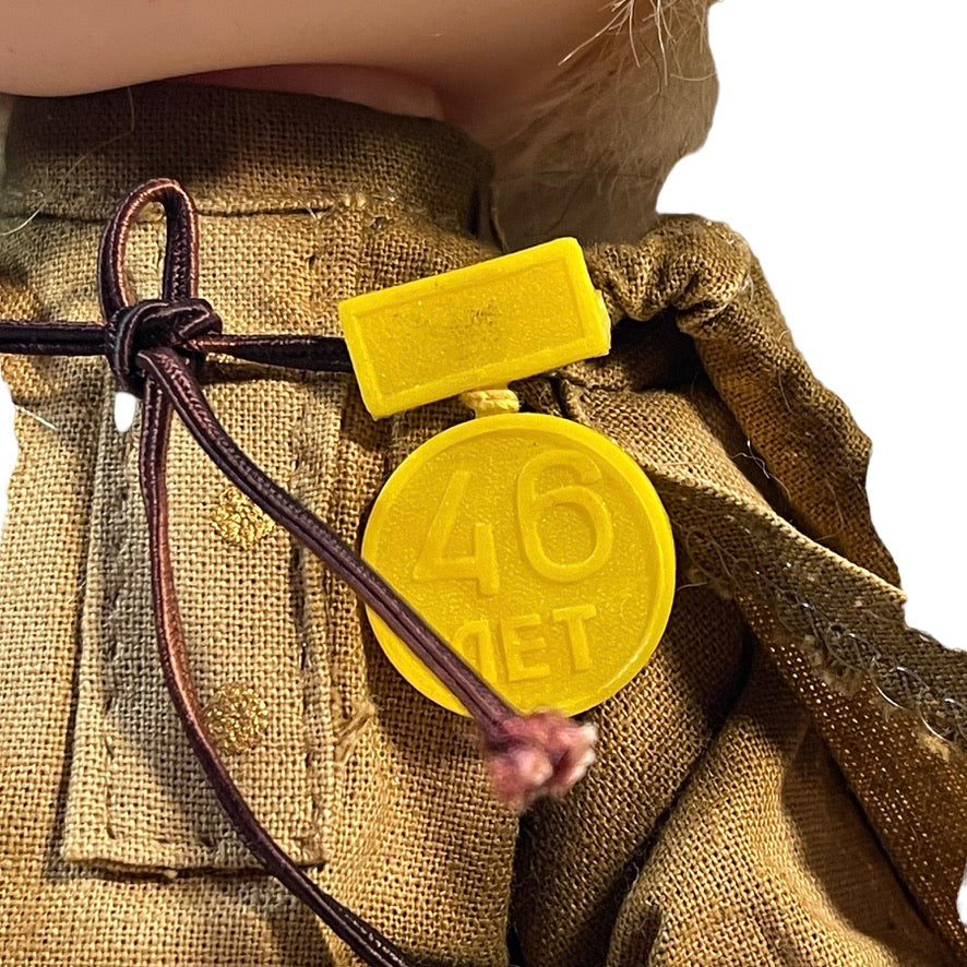 Interesting Historical 13" Vinyl Russian Female Soldier Doll complete with medals, cape, boots and beret by doll artist, Vasili Tyorkin. Excellent preowned condition.