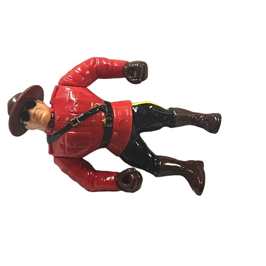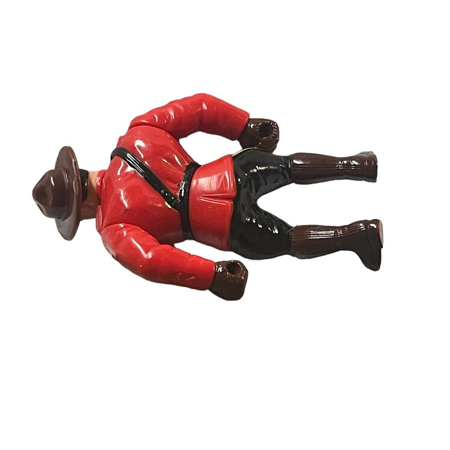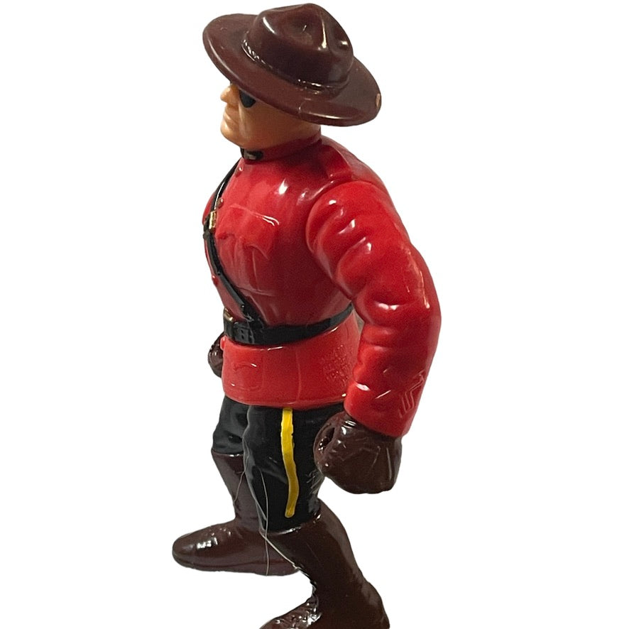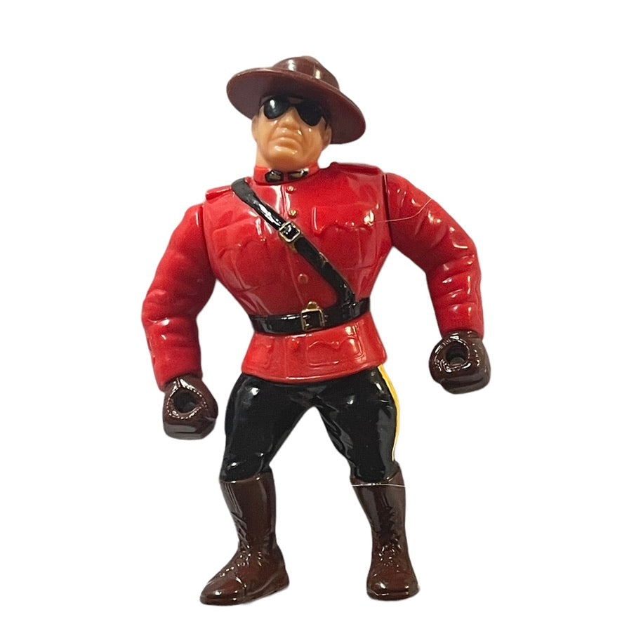 WWF WWE Hasbro/Playskool Series 5 Wrestling Figure, Mountie in traditional red tunic, is in good preowned condition. Missing accessory