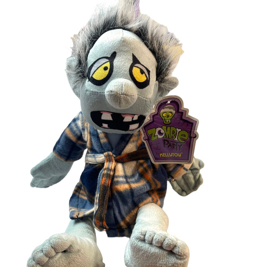 ZOMBIE PARTY Walker Ghoul Plush Doll by KELLYTOY , Plaid Housecoat UWT